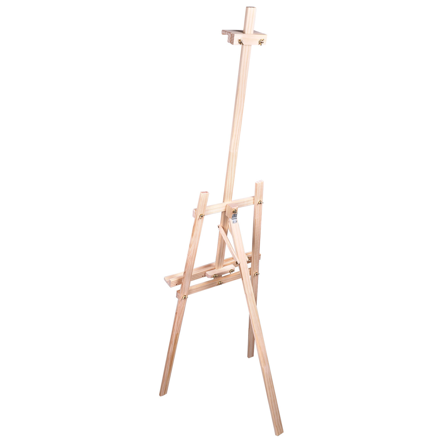 Мольберт t;Лираt; - это универсальный мольберт с наклонной штангой. Материал - сосна. Угол наклона опорной ноги можно изменять, высота полки и фиксатора холста также регулируется. Максимальная высота холста составляет 107 см. Мачта фиксируется винтом-барашком.