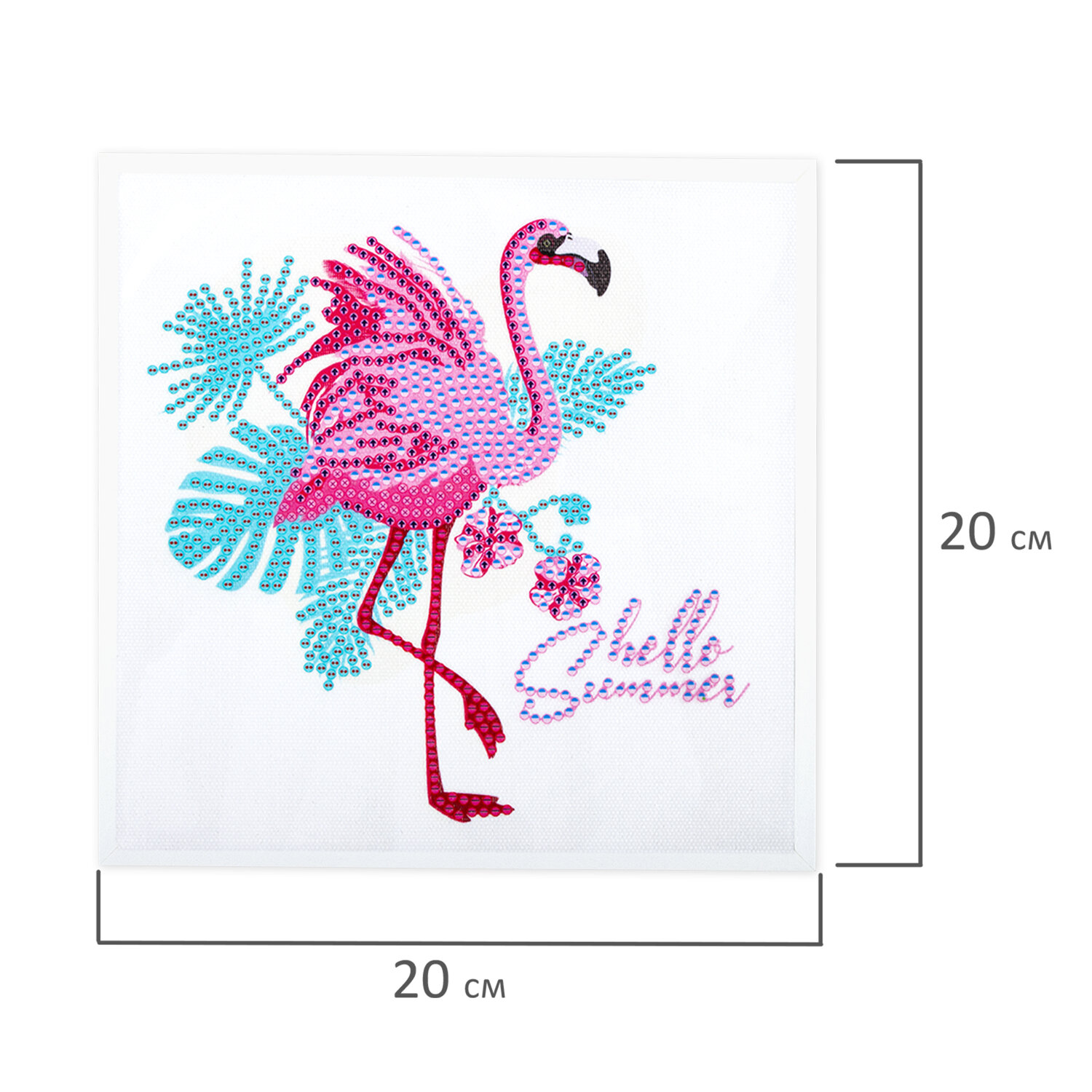 Товар высокого качества с детально проработанной схемой и надёжным клеевым слоем, но при этом относится к среднему ценовому сегменту. Картина стразами (алмазная мозаика) 20х20 см, ЮНЛАНДИЯ "Фламинго", в деревянной рамке, 662438