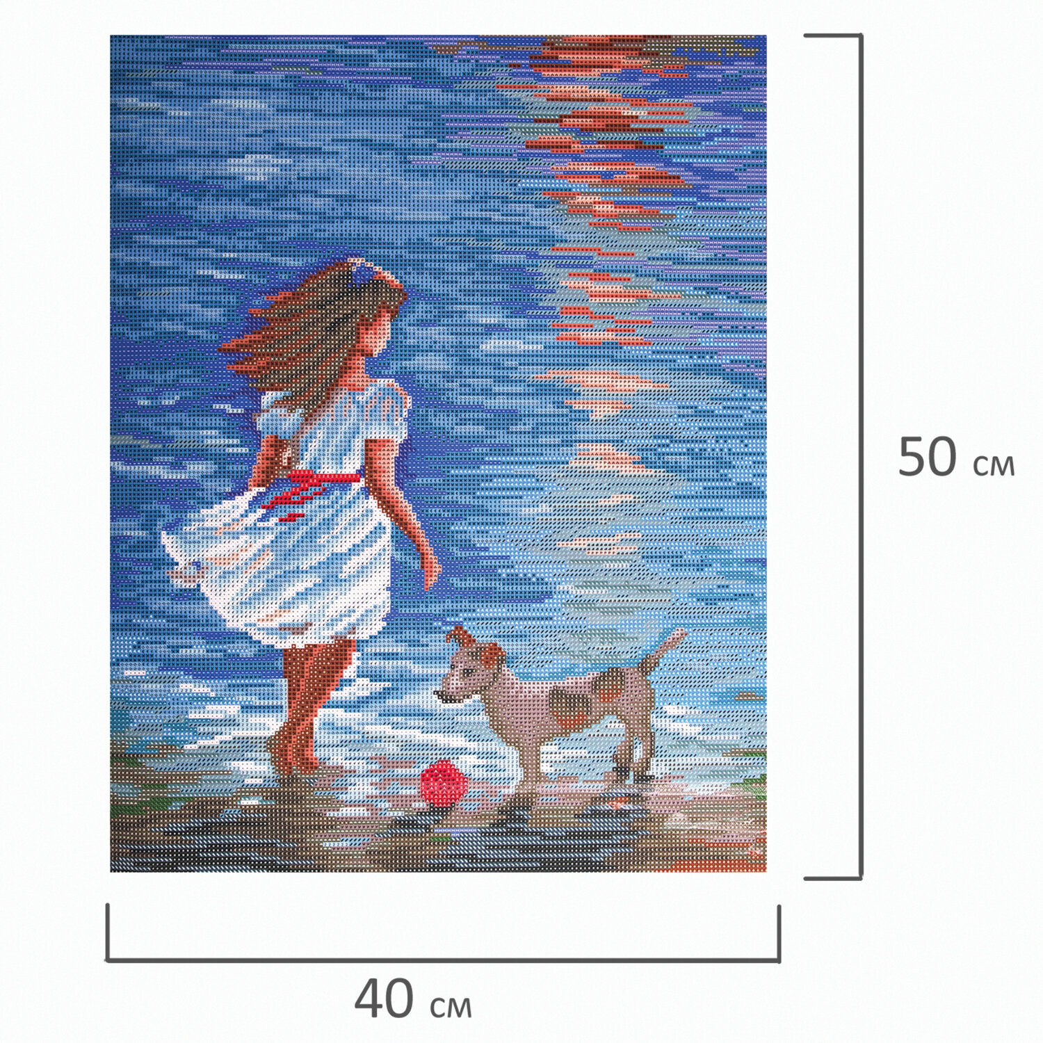 Картина стразами t;Девочка с собачкойt; основывается на эксклюзивном сюжете t;Настя и Гоша на прогулкеt; от российского художника Калашниковой Е. В. и включает в себя: