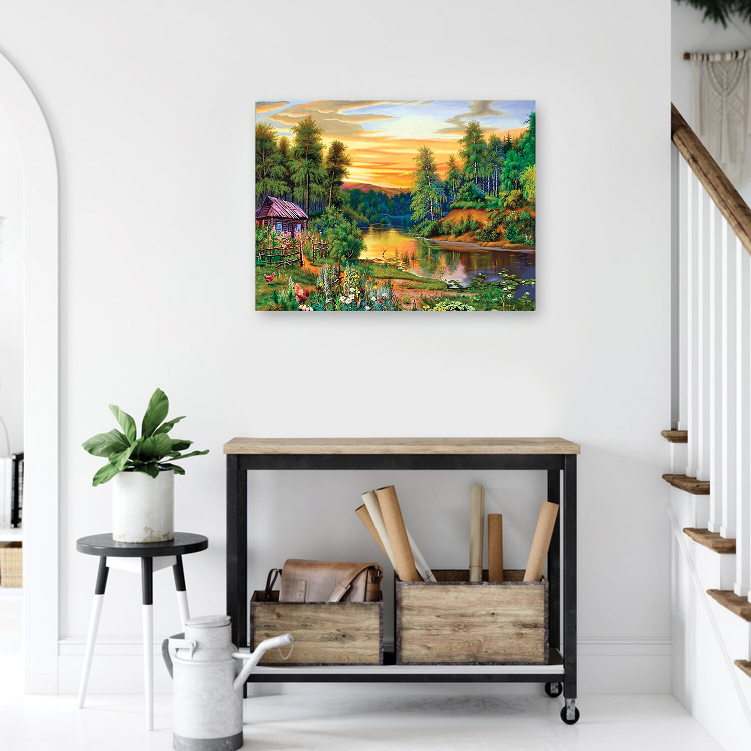 Товар высокого качества с детально проработанной схемой и надёжным клеевым слоем, но при этом относится к среднему ценовому сегменту. Картина стразами (алмазная мозаика) 40х50 см, ОСТРОВ СОКРОВИЩ "Домик в лесу", без подрамника, 662417