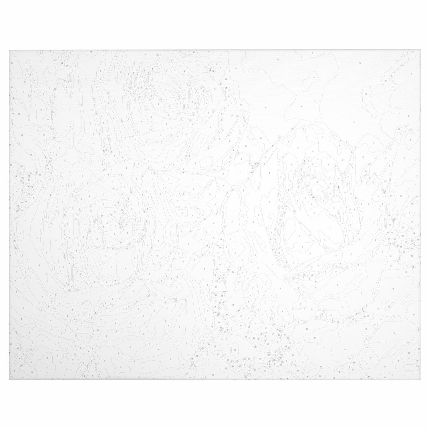 В набор входит: 1 хлопковый холст на подрамнике с контуром, 1 лист бумаги для тренировки, набор из 30 акриловых красок объемом 3 мл каждая, 3 синтетические кисти и комплект металлических креплений для подвешивания на стену.