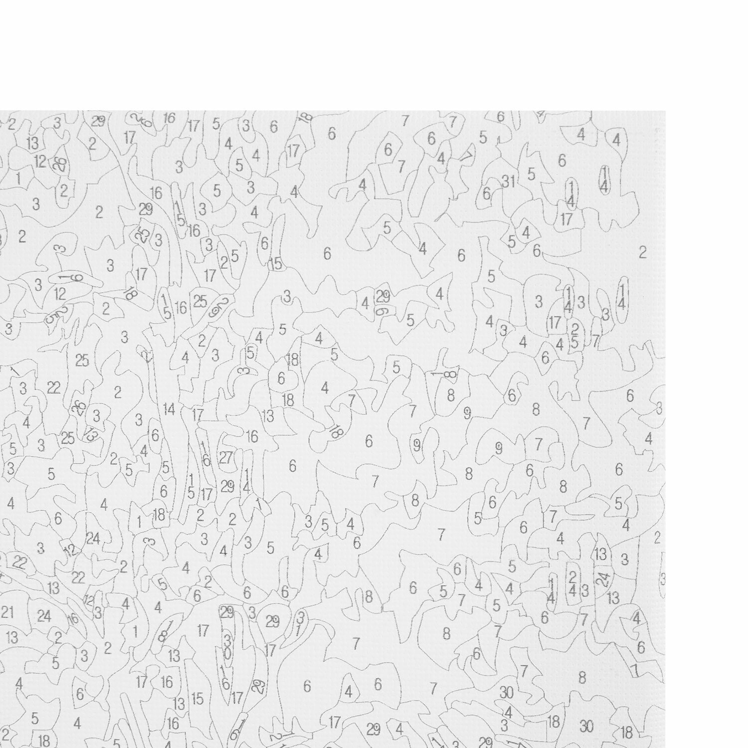 В набор входит: 1 хлопковый холст на подрамнике с контуром, 1 лист бумаги для тренировки, набор из 33 акриловых красок объемом 3 мл каждая, 3 синтетические кисти и комплект металлических креплений для подвешивания на стену.