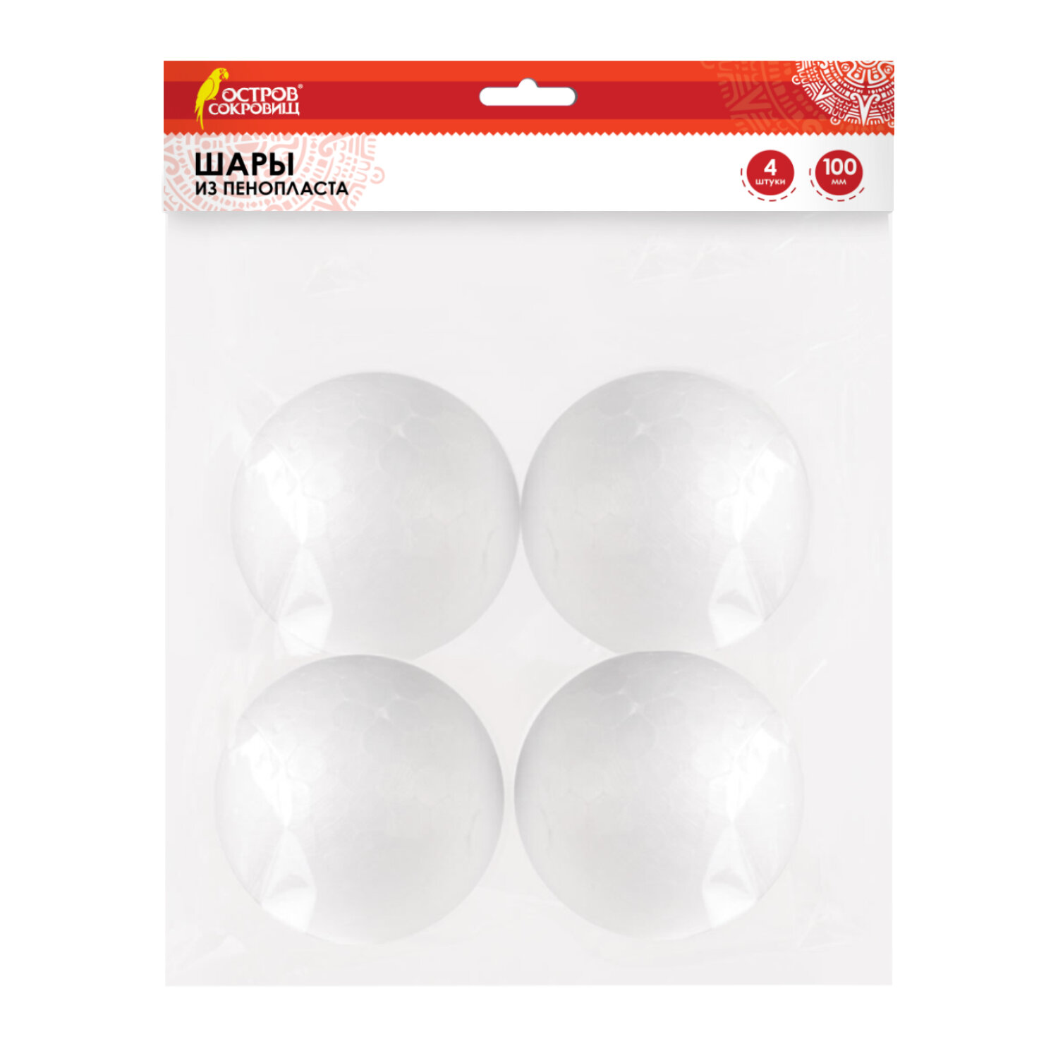 Шары из пенопласта, 100 мм, 4 шт., ОСТРОВ СОКРОВИЩ, 665369