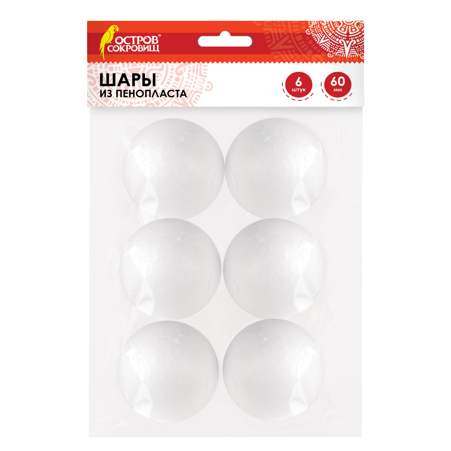 - Шары из пенопласта, 60 мм, 6 шт., ОСТРОВ СОКРОВИЩ, 665367