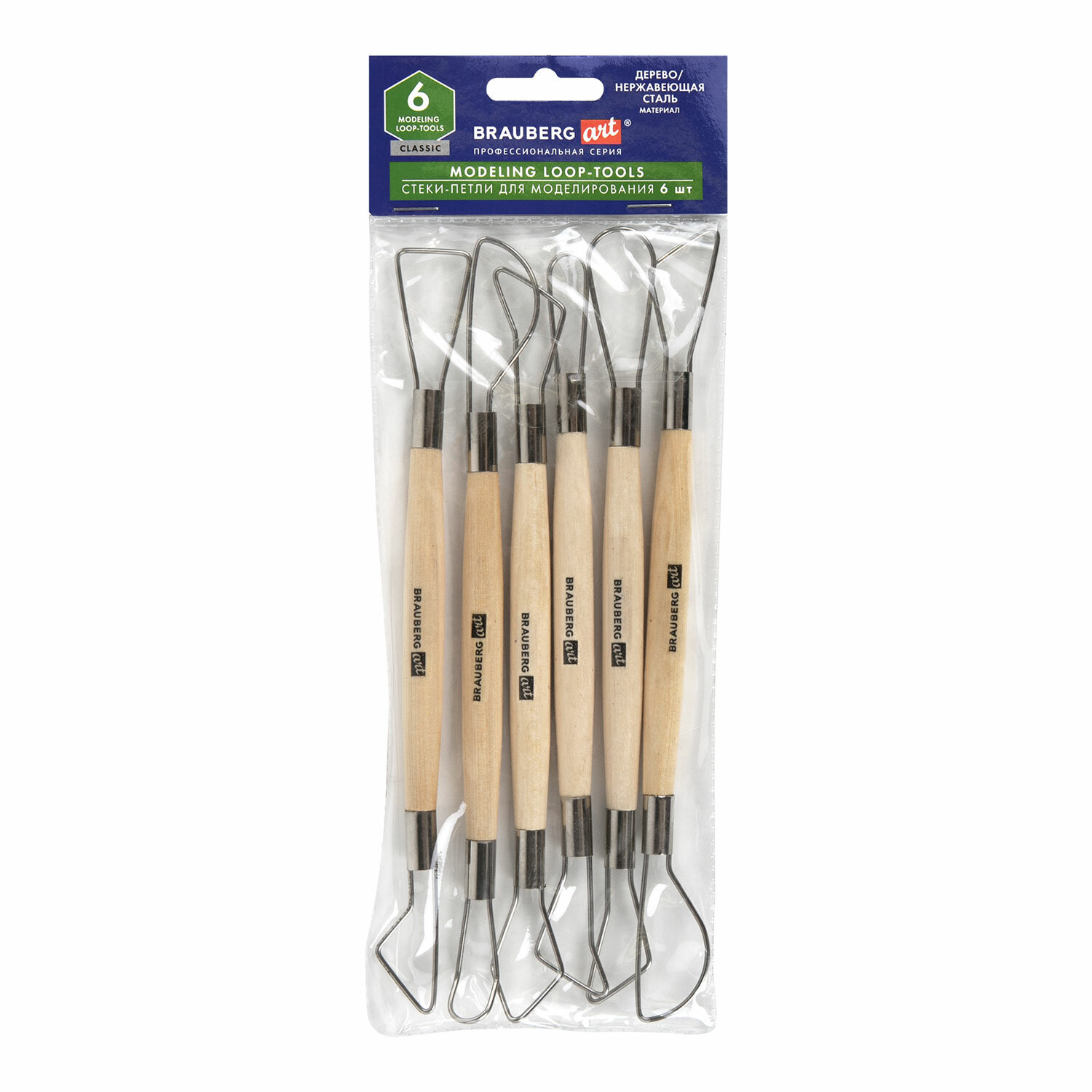 Набор инструментов находится в ОПП-пакете с европодвесом. Стеки-петли для моделирования из дерева и металла, НАБОР 6 шт., BRAUBERG ART, 271168