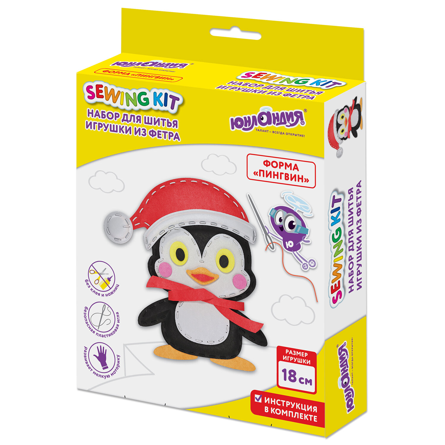 Набор способствует развитию мелкой моторики, внимательности, усидчивости, аккуратности, а готовая игрушка, созданная своими руками, будет долго радовать ребенка. Набор для шитья игрушки из фетра "Пингвин", ЮНЛАНДИЯ, 664731