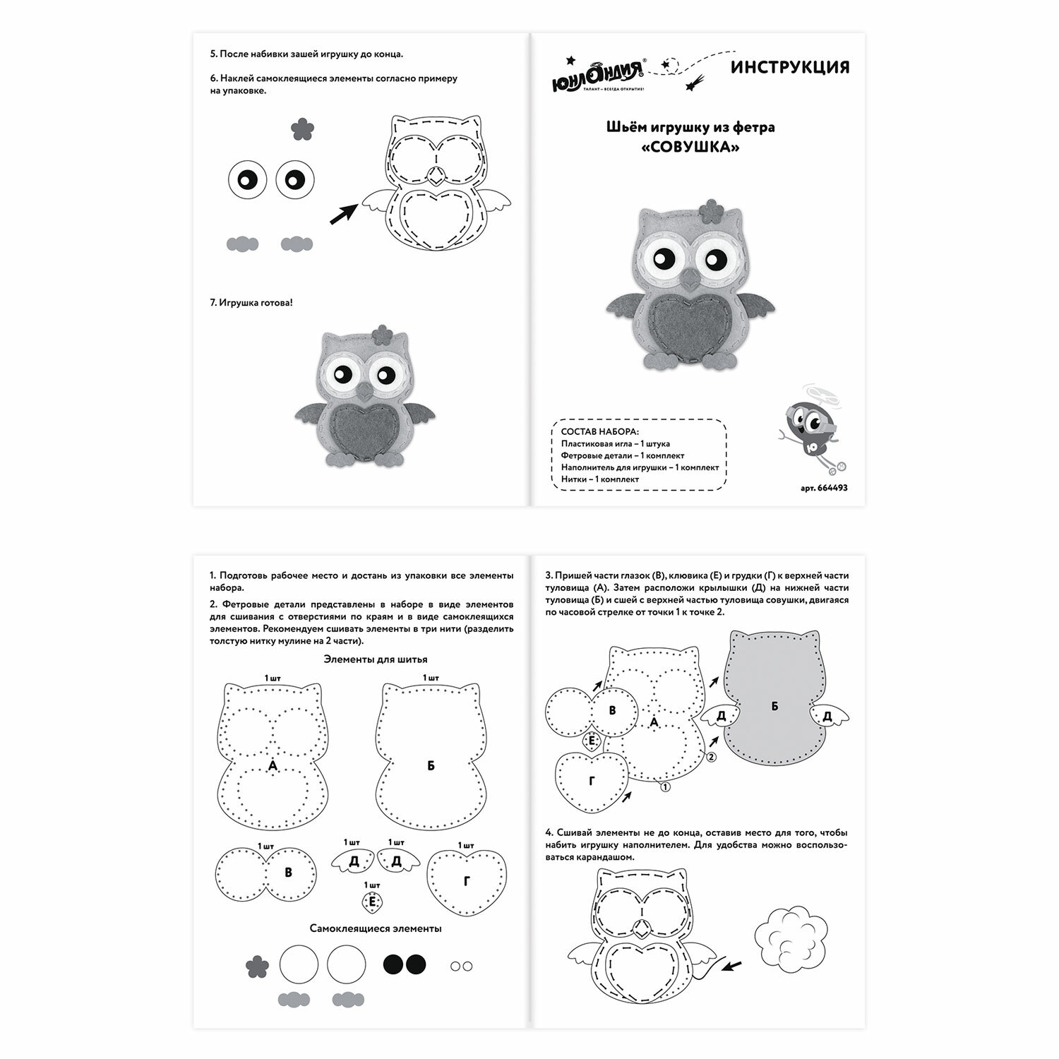 - Набор для шитья игрушки из фетра "Совушка", ЮНЛАНДИЯ, 664493