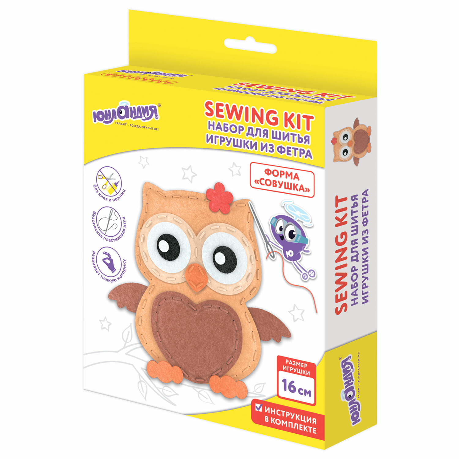 Набор способствует развитию мелкой моторики, внимательности, усидчивости, аккуратности, а готовая игрушка, созданная своими руками, будет долго радовать ребенка. Набор для шитья игрушки из фетра "Совушка", ЮНЛАНДИЯ, 664493