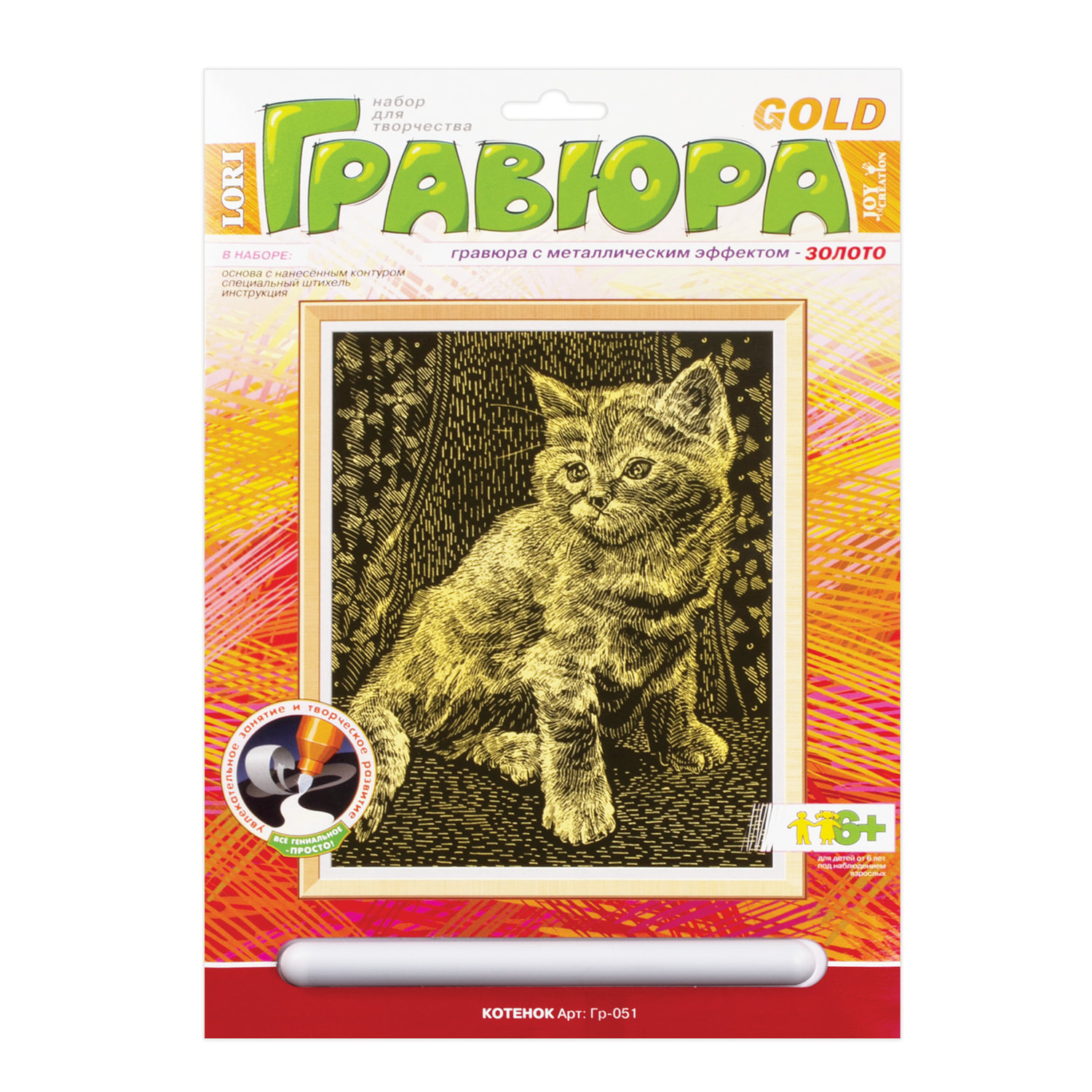 - Гравюра с эффектом золота "Котёнок", 18х24 см, основа, штихель, LORI, Гр-051