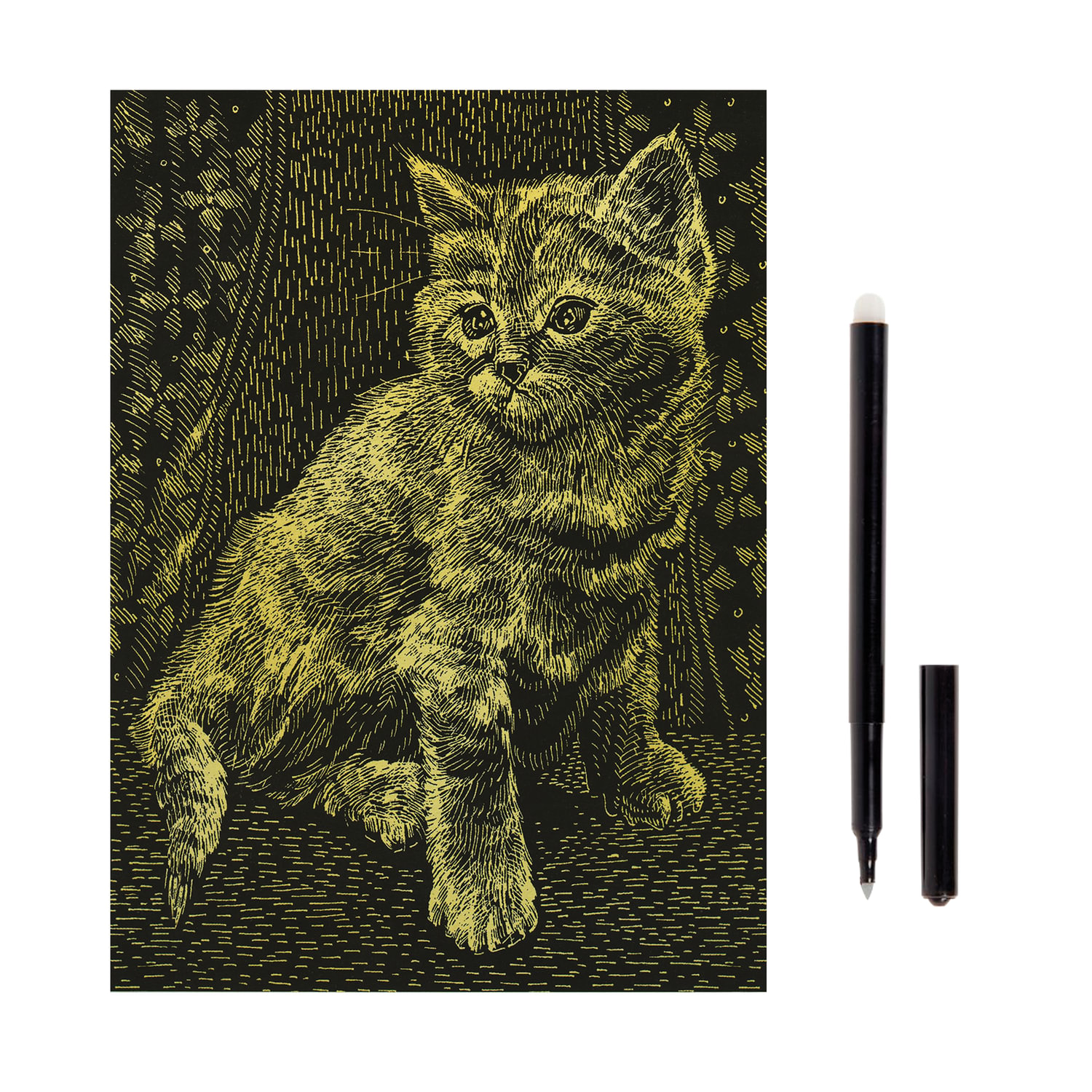 Гравюра с эффектом золота "Котёнок", 18х24 см, основа, штихель, LORI, Гр-051