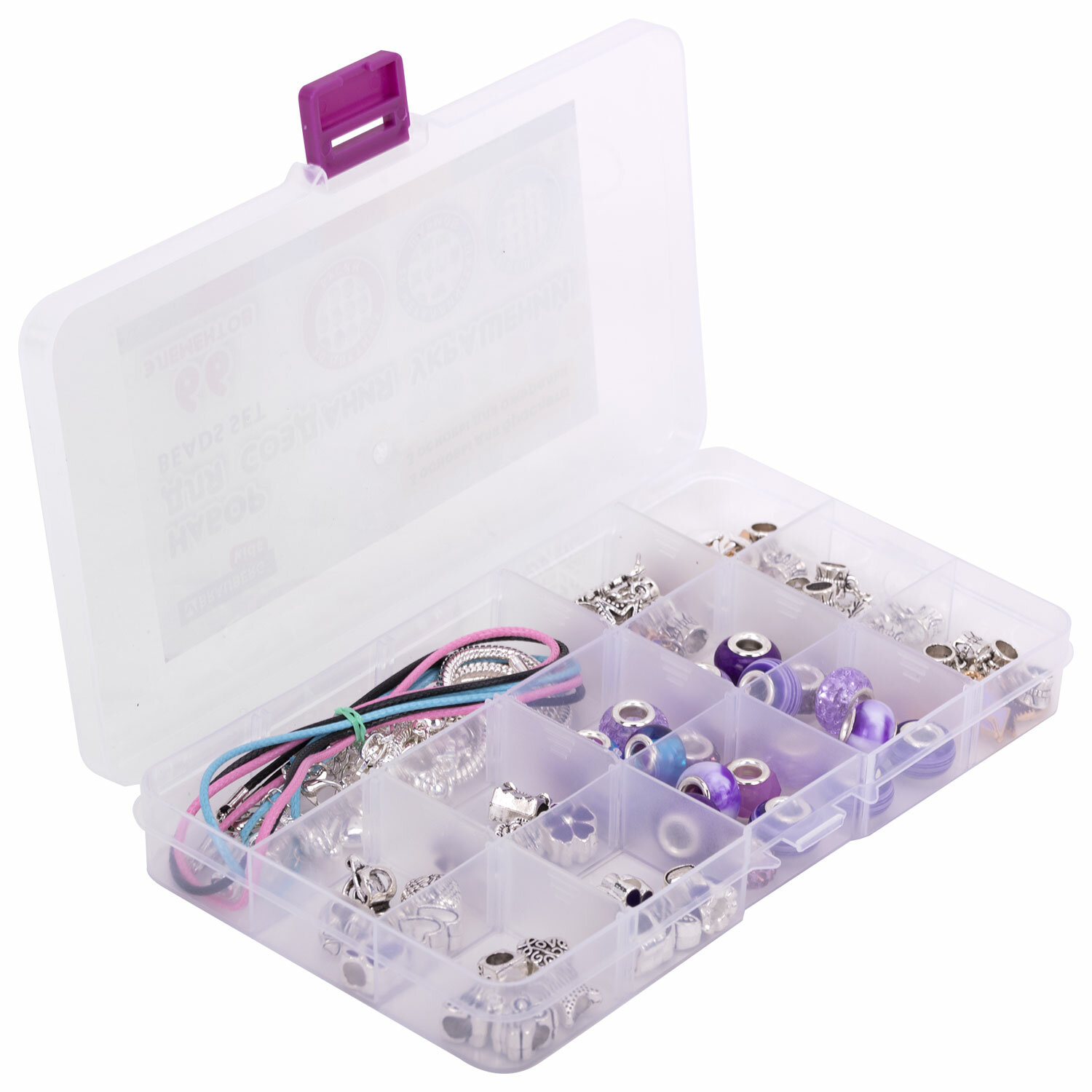 - Набор для создания бижутерии и украшений 66 элементов Аметист в пластиковом боксе, бусины, шармы, BRAUBERG KIDS, 665295