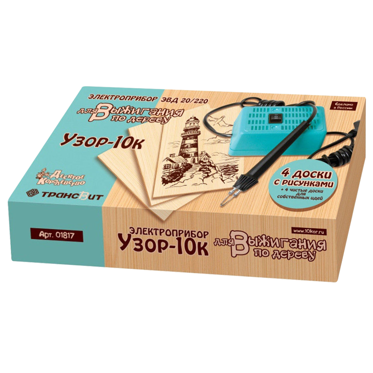 - Набор для выжигания "Узор-10к", выжигатель + 8 досок (4 с рисунком + 4 чистых), 15x21 см, "Десятое королевство", 01817