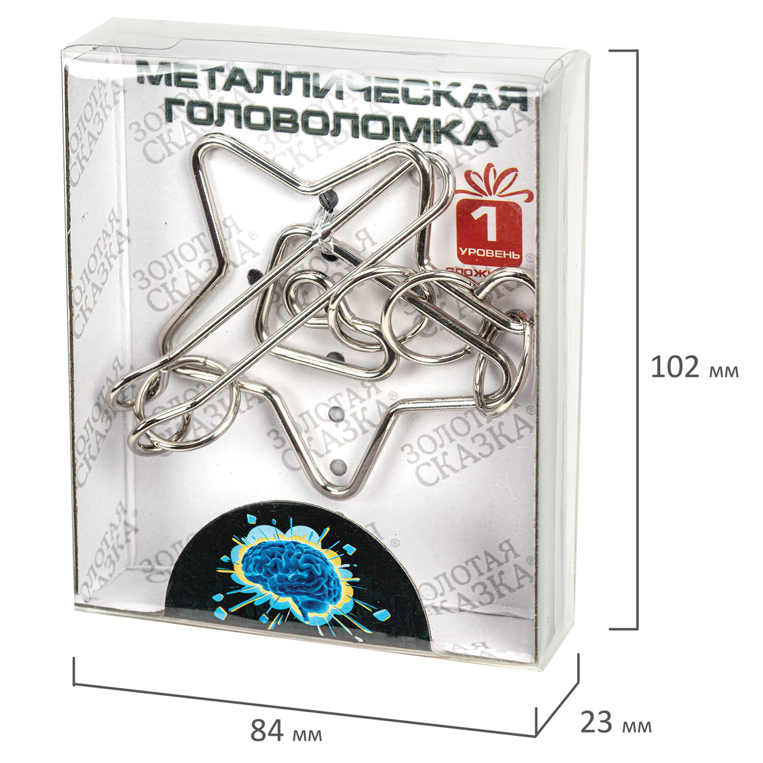 В дисплее 24 разных по сложности головоломки. Уровни сложности определяются от 1 до 3, где 1 – несложная головоломка, 3 – сложная. Решение каждой головоломки находится внутри индивидуальной упаковки. Головоломка металлическая большая ЗОЛОТАЯ СКАЗКА, 24 вида, в дисплее, разные уровни сложности, 664924