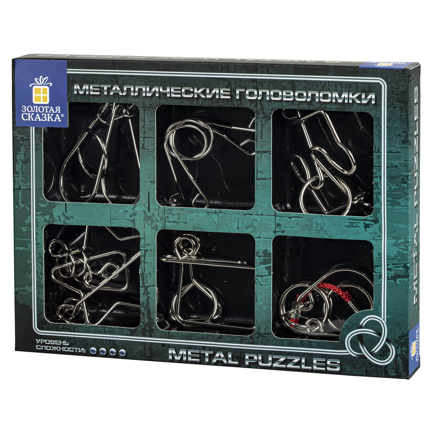 В наборе 6 головоломок. Головоломки металлические большие ЗОЛОТАЯ СКАЗКА, набор 6 штук, MEDIUM level, 664926