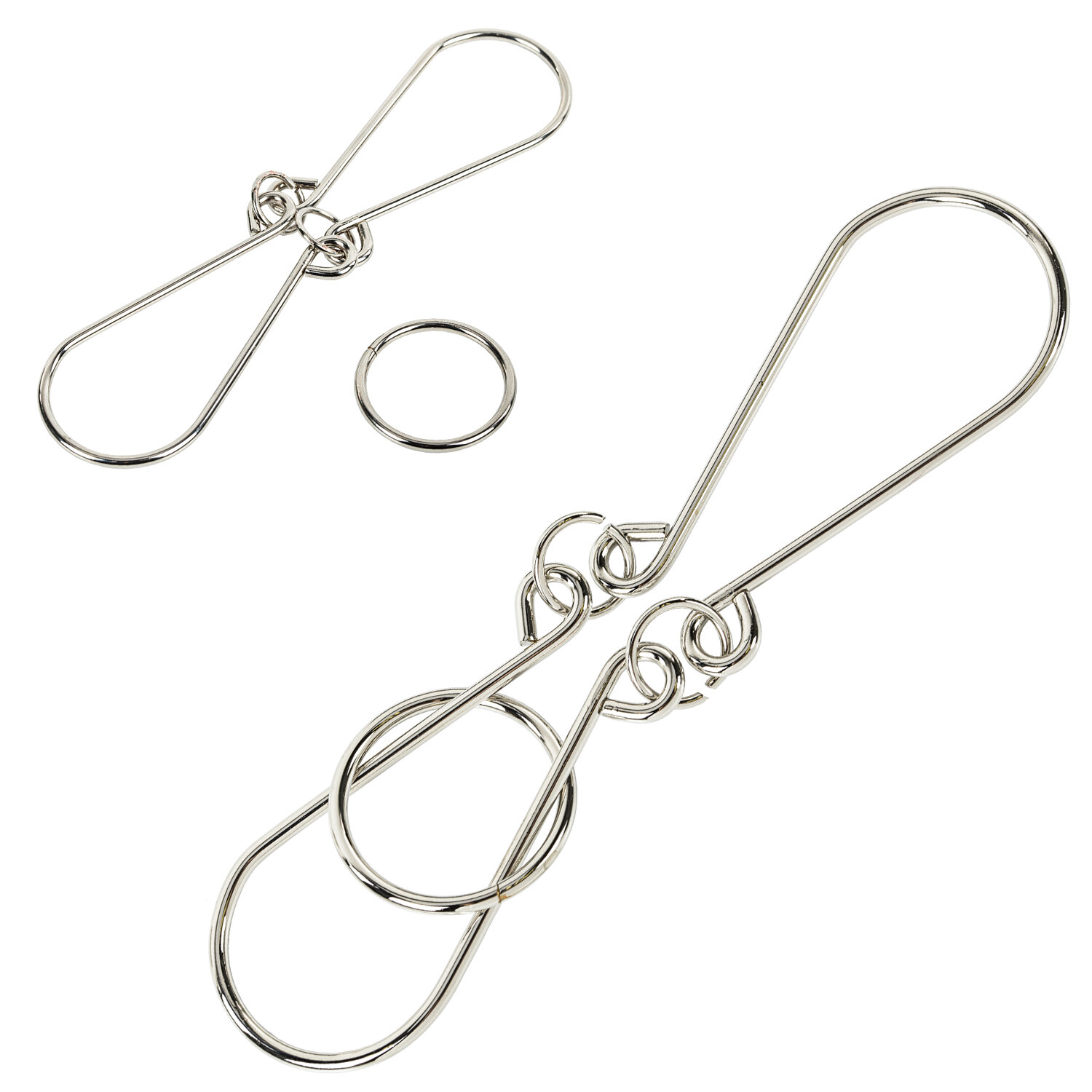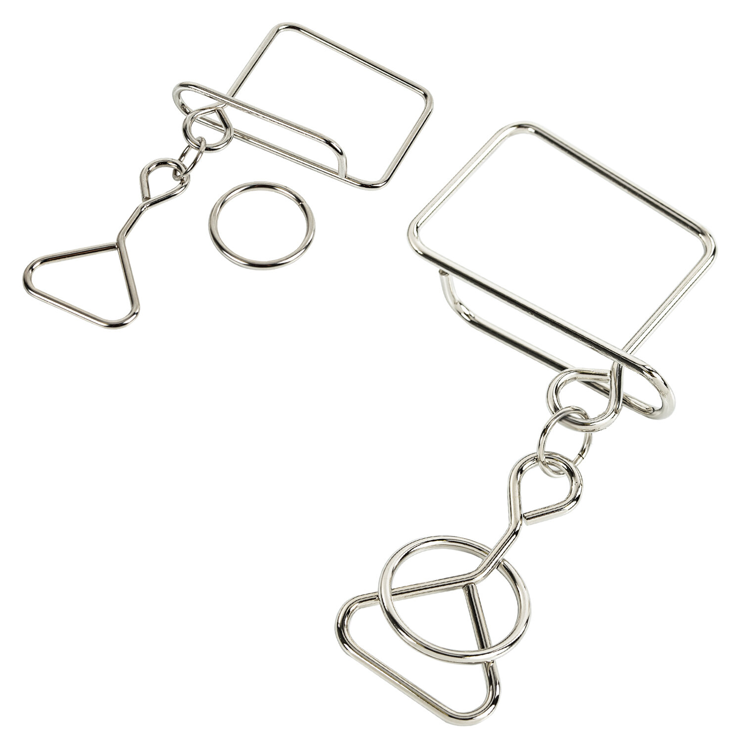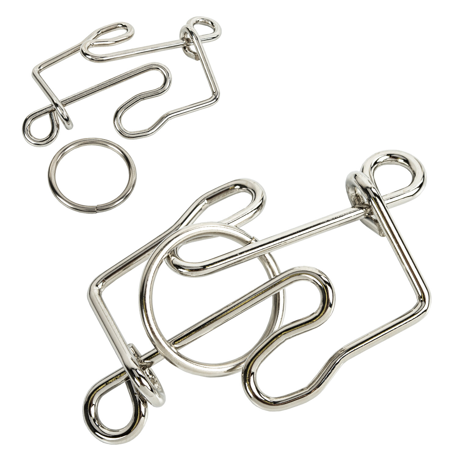 Металлический пазл представляет собой два и более элементов, изготовленных из стали диаметром 2,5 мм. Смысл решения головоломки состоит в том, чтобы разъединить ее части, а затем соединить обратно. Решение каждой головоломки находится на индивидуальной упаковке.