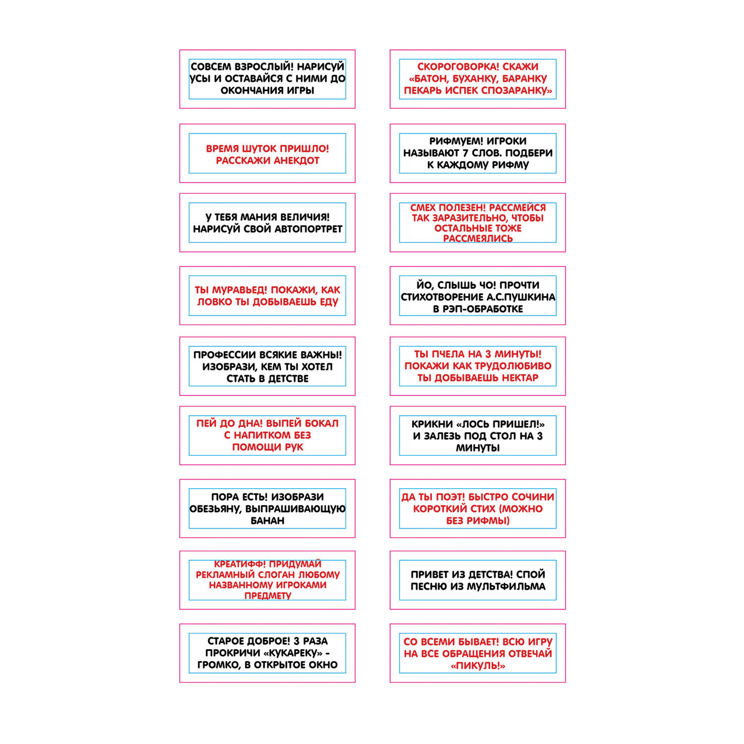 Задания (фанты) нанесены на бруски специальной краской, никакие пленки наклеивать не нужно, можно сразу играть. Краска безопасна, долговечна и является износостойкой. Брусочки ничем не покрыты, изготовлены из массива сухой вятской березы. Наличие надписи никак не отражается на игровых свойствах, все бруски скользят одинаково.