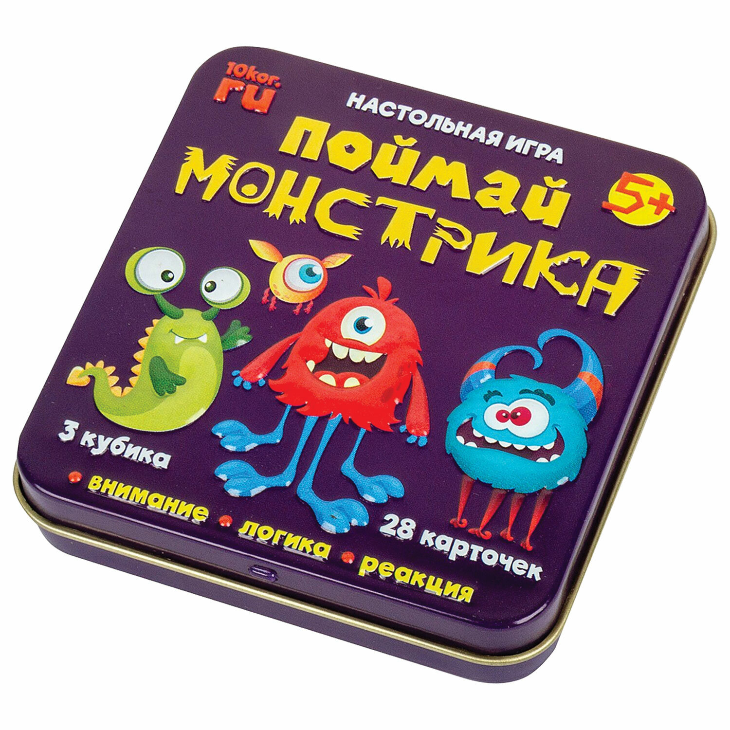 - Игра настольная "Поймай монстрика", жестяная коробочка, 10 КОРОЛЕВСТВО, 03527