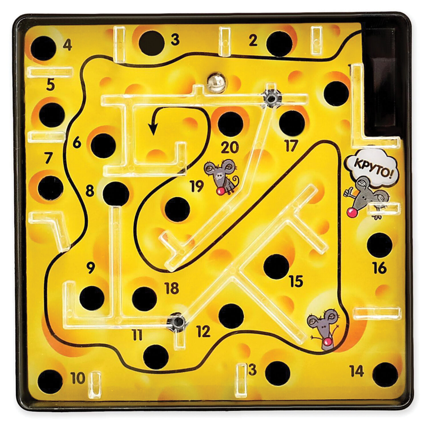 1) Положите шарик в начало лабиринта к цифре 1.