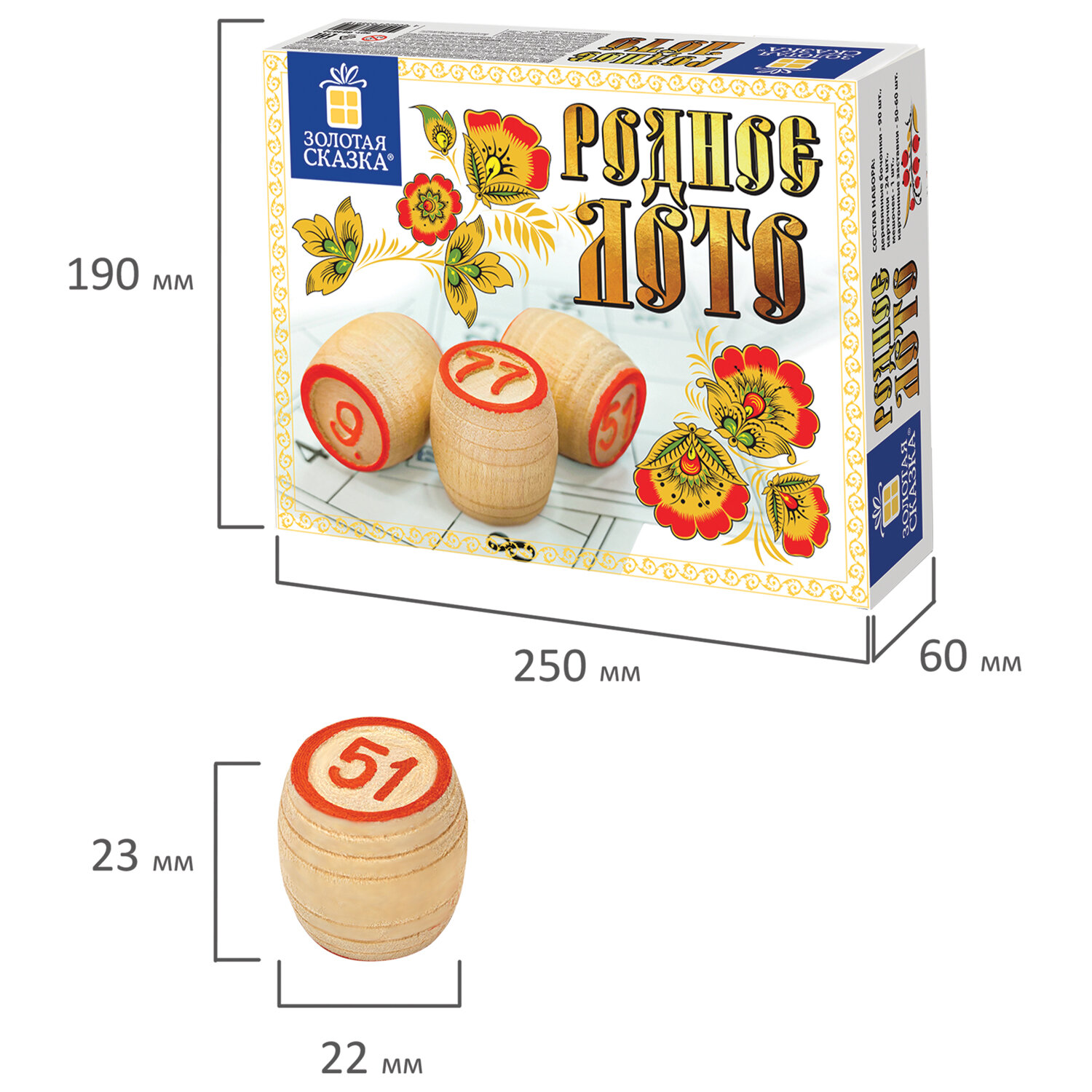 - Родное лото классическое с деревянными бочонками, в картонной упаковке, ЗОЛОТАЯ СКАЗКА, 664672