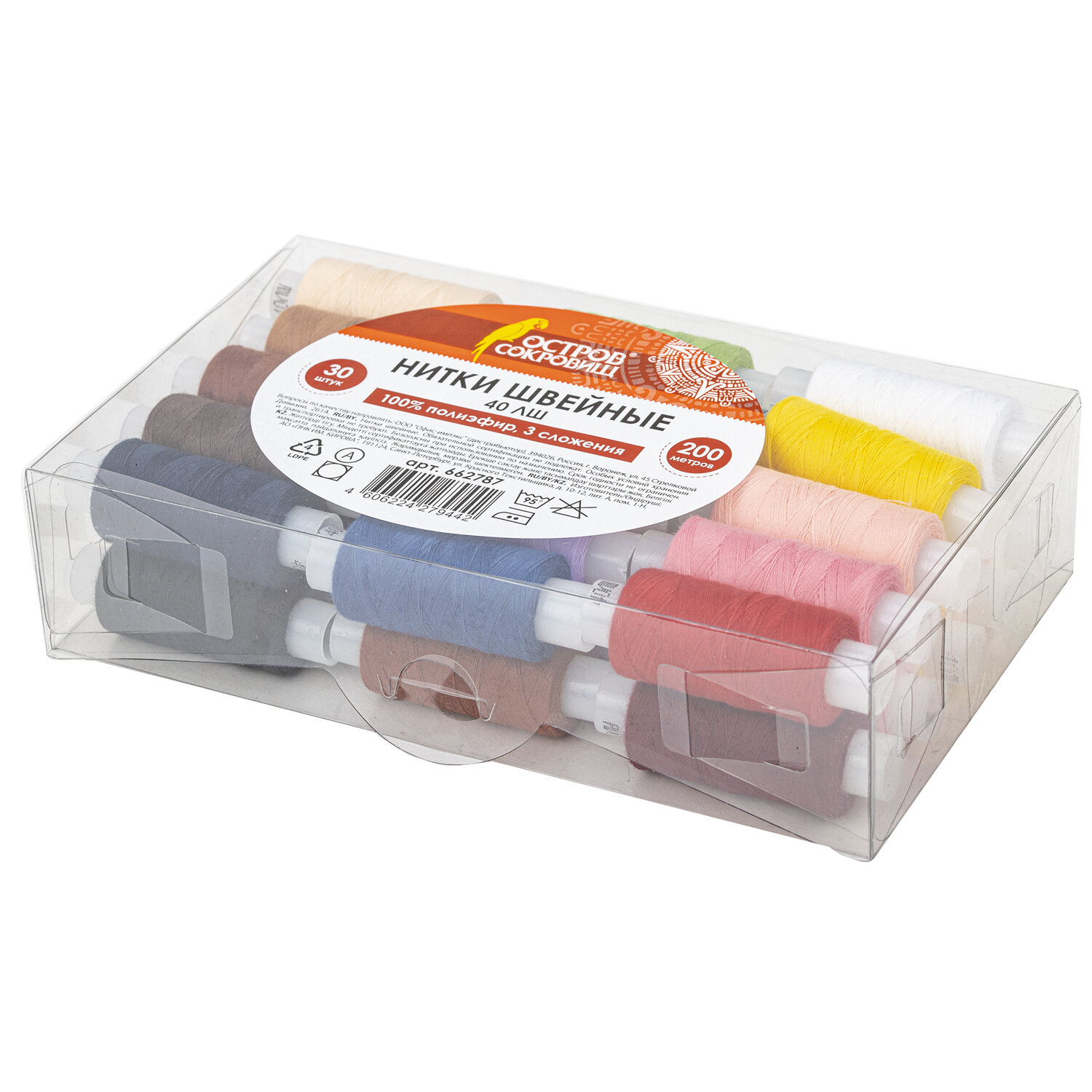 - Набор швейных ниток, 30 цветов по 200 м, в боксе, 40 ЛШ, ОСТРОВ СОКРОВИЩ, 662787