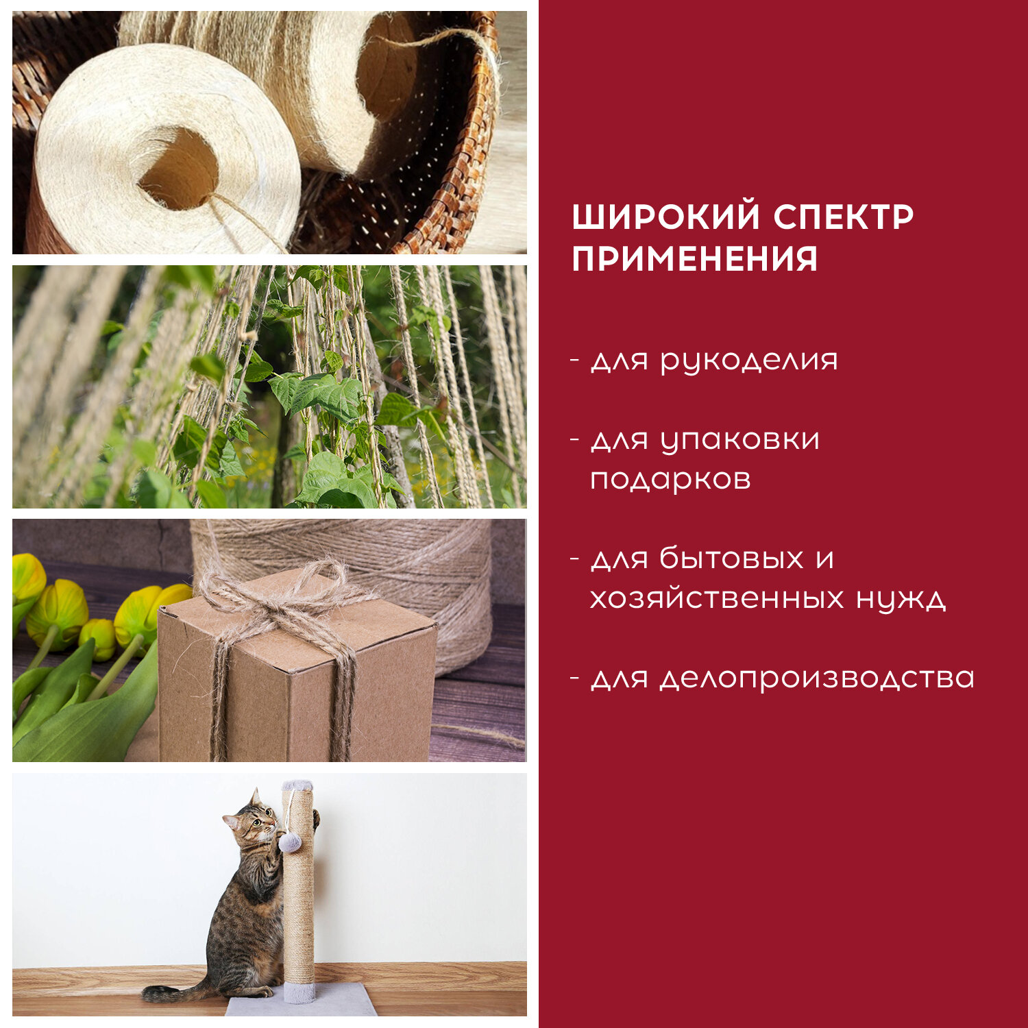 - Шпагат джутовый полированный длина 1200 м диаметр 1,8 мм, 2-х ниточный, BRAUBERG, 607942