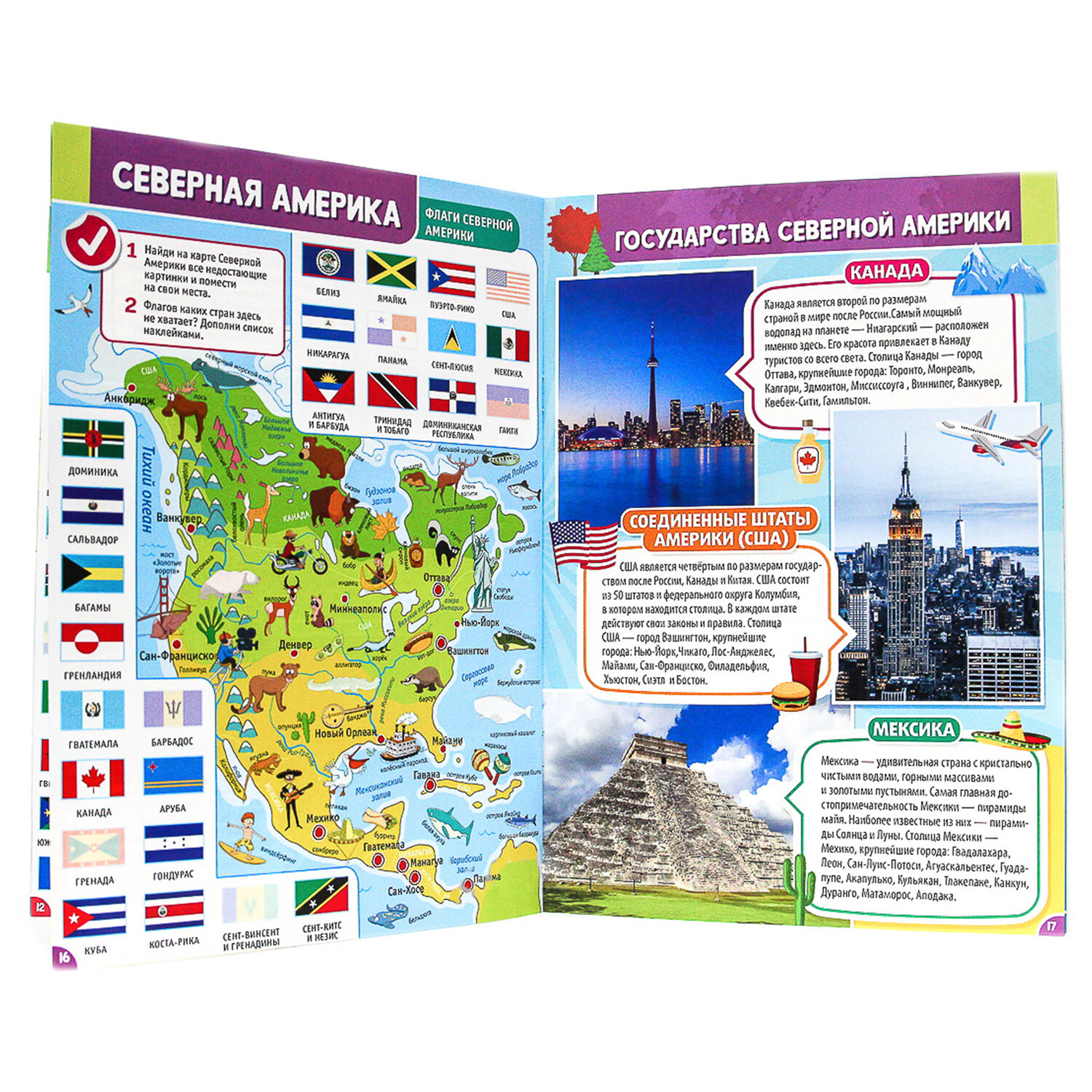 Книжка-пособие АТЛАС МИРА. ФЛАГИ И СТРАНЫ, 195х275 мм, 24 стр. + 2 стр. наклеек, ПП, 1853-7