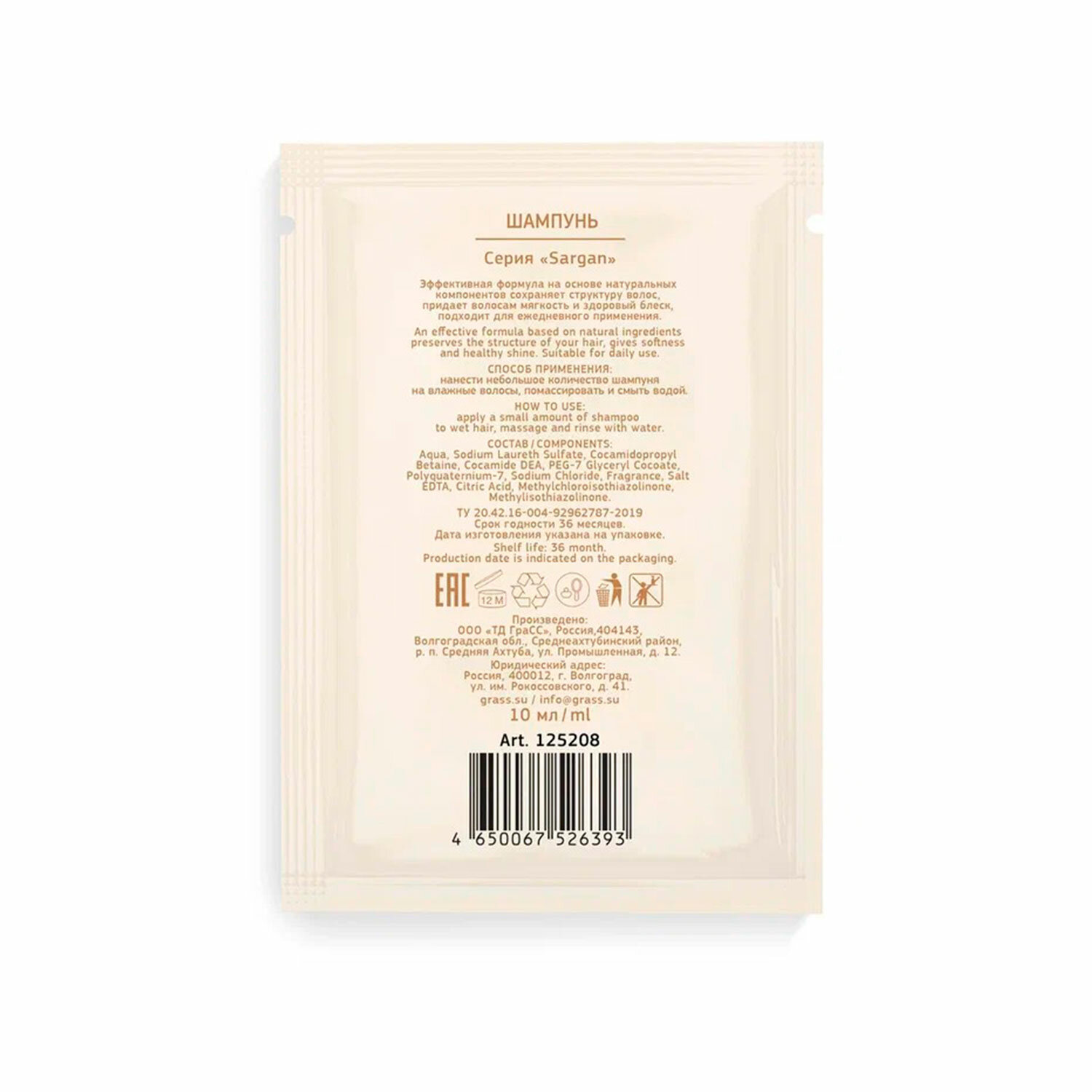 - Шампунь одноразовый 10 мл, КОМПЛЕКТ 500 шт., GRASS SARGAN, саше, флоупак, 125208