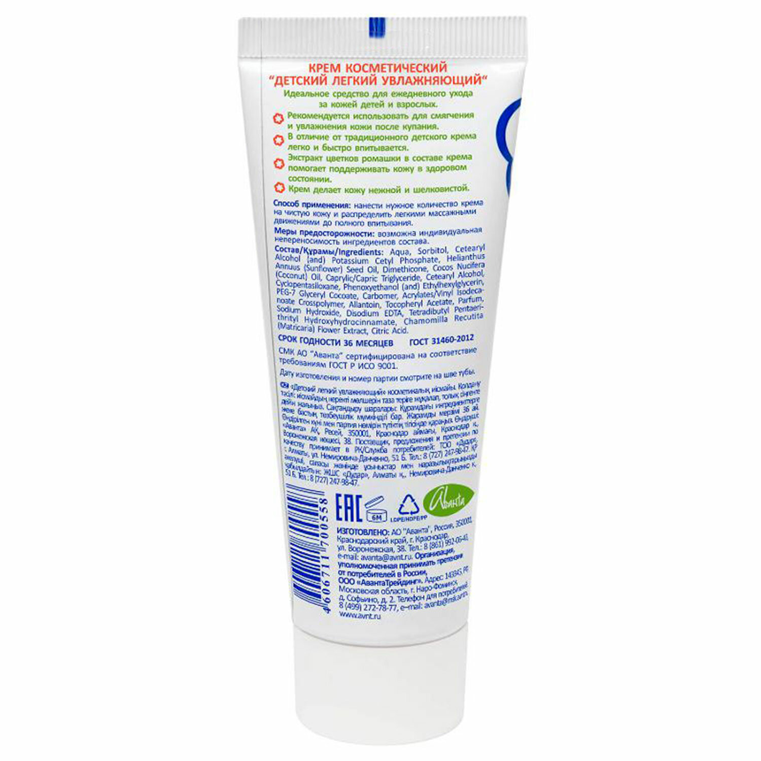 Состав: вода, сорбитол, воск эмульсионный, масло подсолнечное, диметикон, масло кокосовое, каприлик/каприк триглицерид, цетеариловый спирт, циклометикон, феноксиэтанол (и) этилгексилглицерин, пэг-7 глицерилкокоат, акрилат/винил изодеканоат кроссполимер, карбомер, ароматическая композиция, витамин Е-ацетат, аллантоин, натрия гидроокись, тетрадибутил пентаэритритил гидроксигидроциннамат, динатрий ЭДТА, экстракт цветков ромашки, кислота лимонная. Крем для рук легкий и увлажняющий 75 мл, "ДЕТСКИЙ", 1788