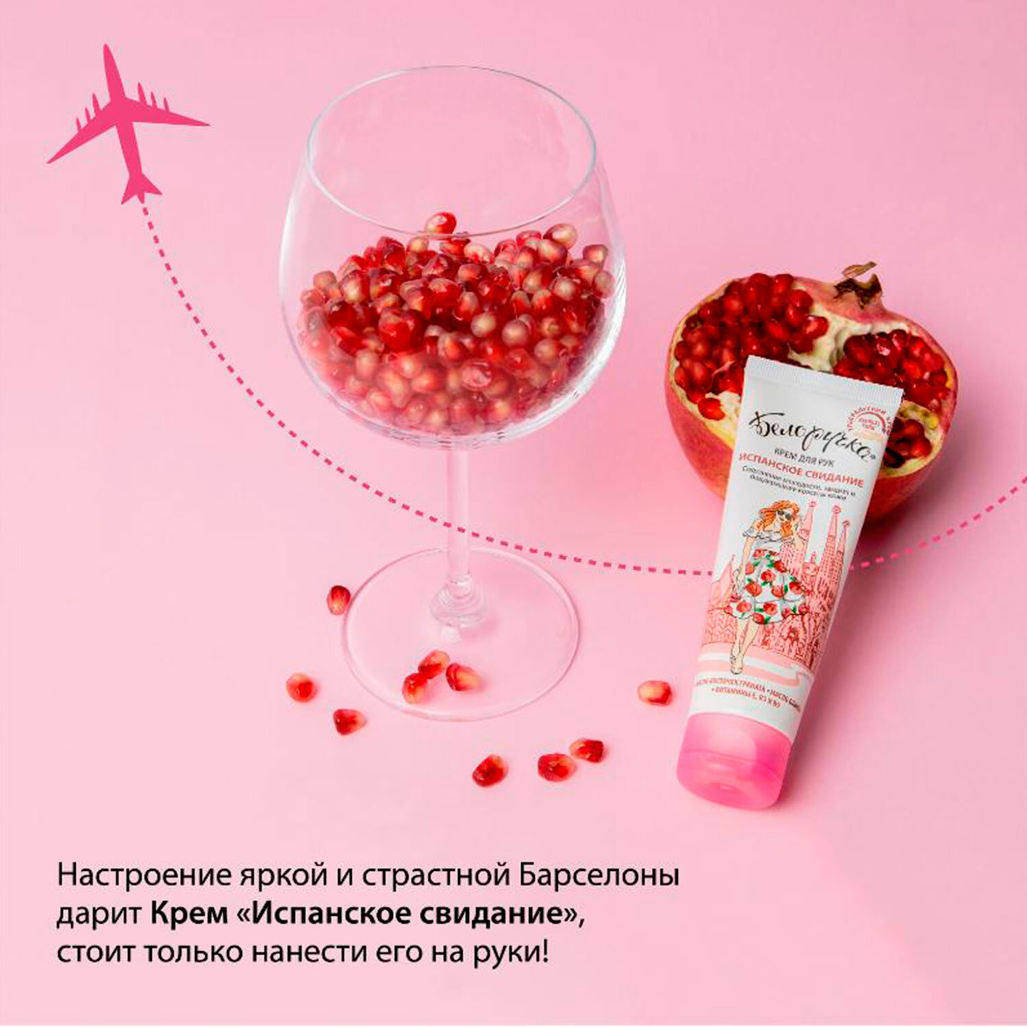 Окунувшись в романтические мечты о путешествиях, не забывайте об уходе за руками. Крем Белоручка t;Испанское свиданиеt; перенесет вас в жизнерадостную и страстную Испанию, окутав кожу рук ярким ароматом спелого граната. Крем питает кожу, стимулирует ее обновление, обеспечивает антиоксидантную защиту и способствует сохранению молодости и красоты.