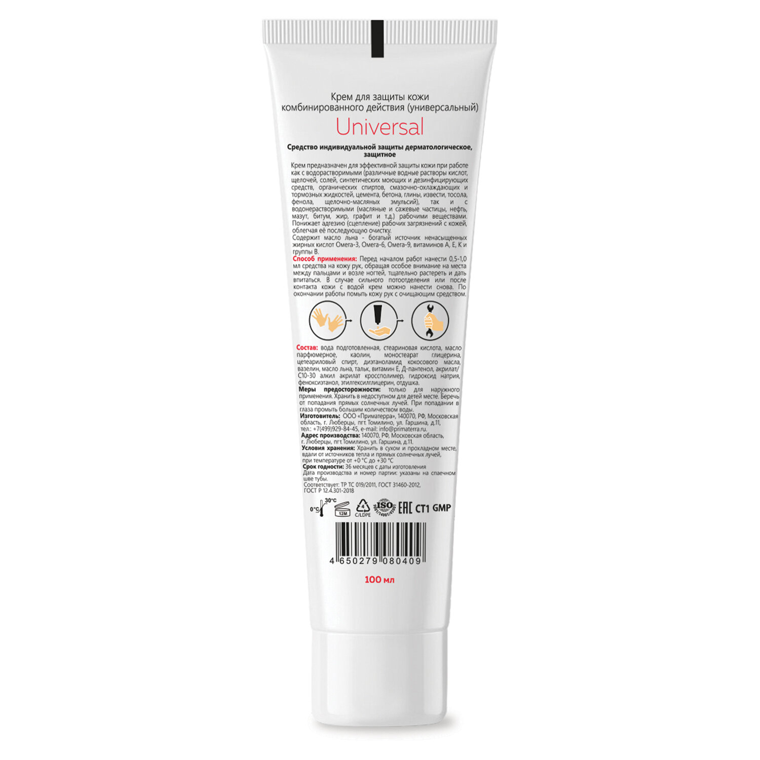 ГОСТ 31460-2012, СТ1 Крем защитный 100 мл M SOLO UNIVERSAL для кожи от водорастворимых и водонерастворимых загрязнений, 8790
