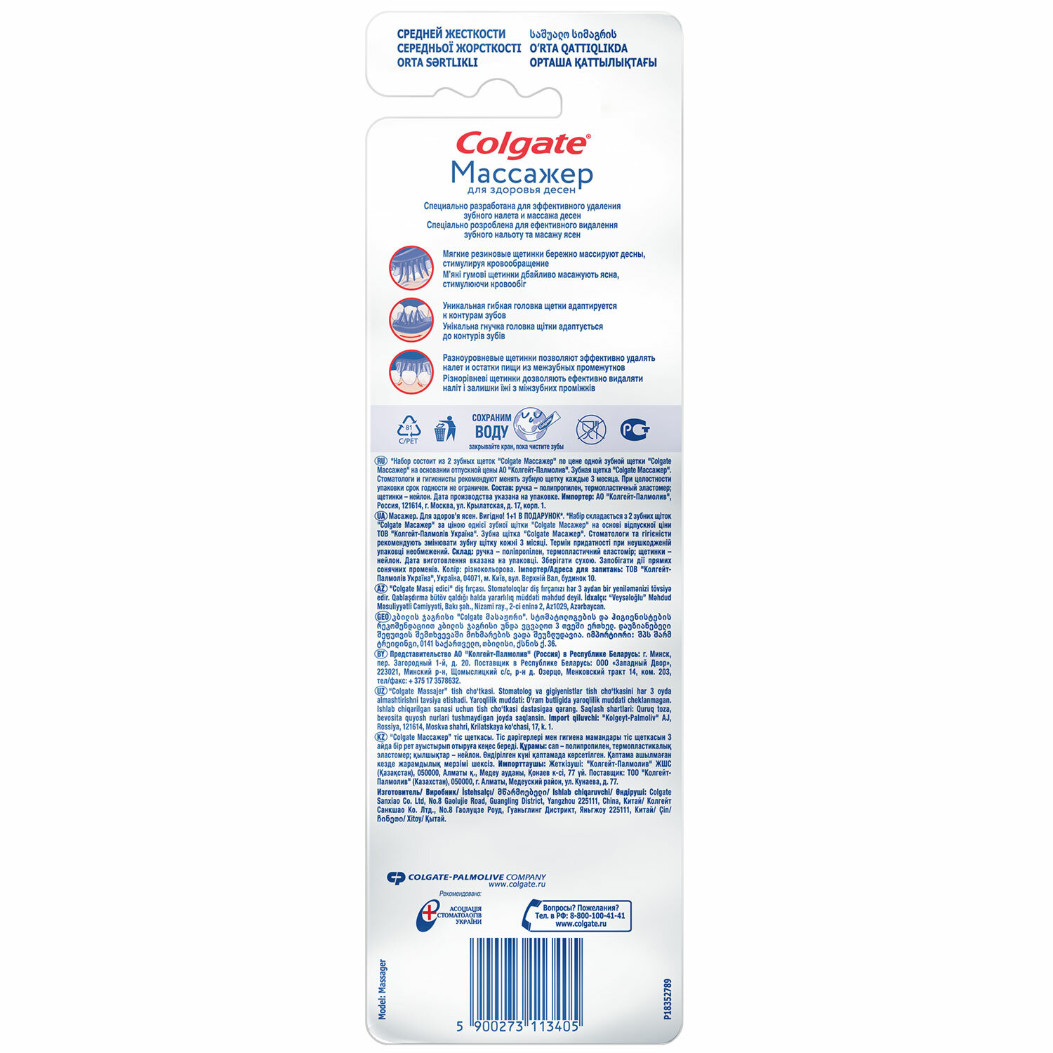 - Зубная щетка НАБОР (1+1) COLGATE "Массажер", средней жесткости, FCN20845
