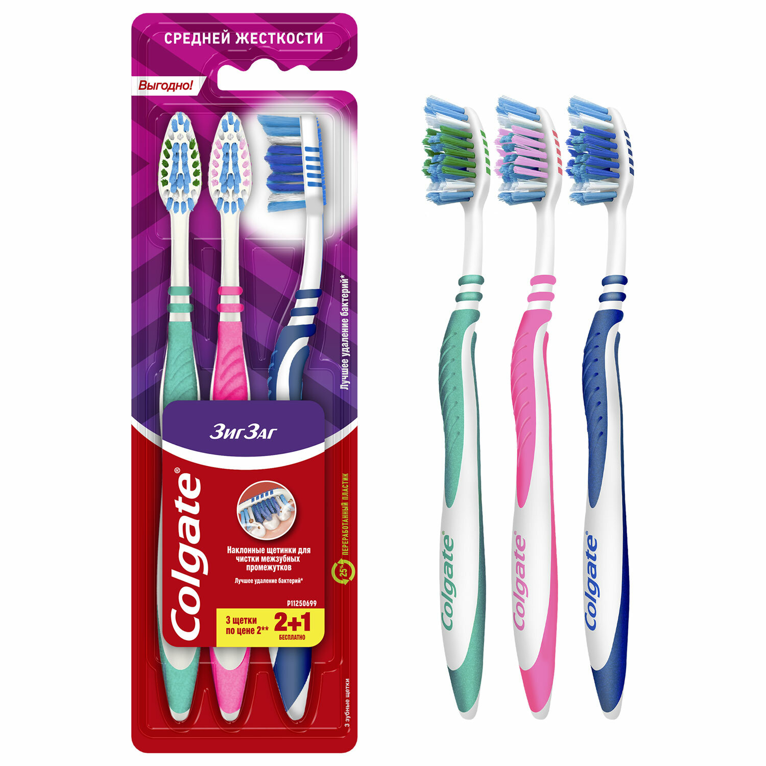 Зубная щетка НАБОР (2+1) COLGATE "Зиг заг", средней жесткости, FVN59964
