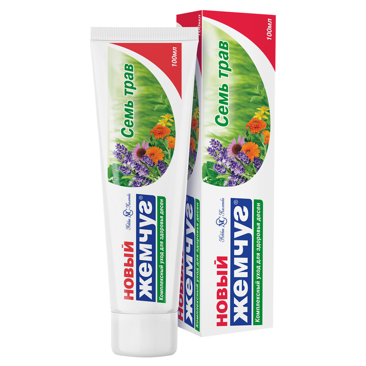 - Зубная паста 100 мл, НОВЫЙ ЖЕМЧУГ "Семь трав", комплексная защита десен, с натуральным экстрактом, 17127