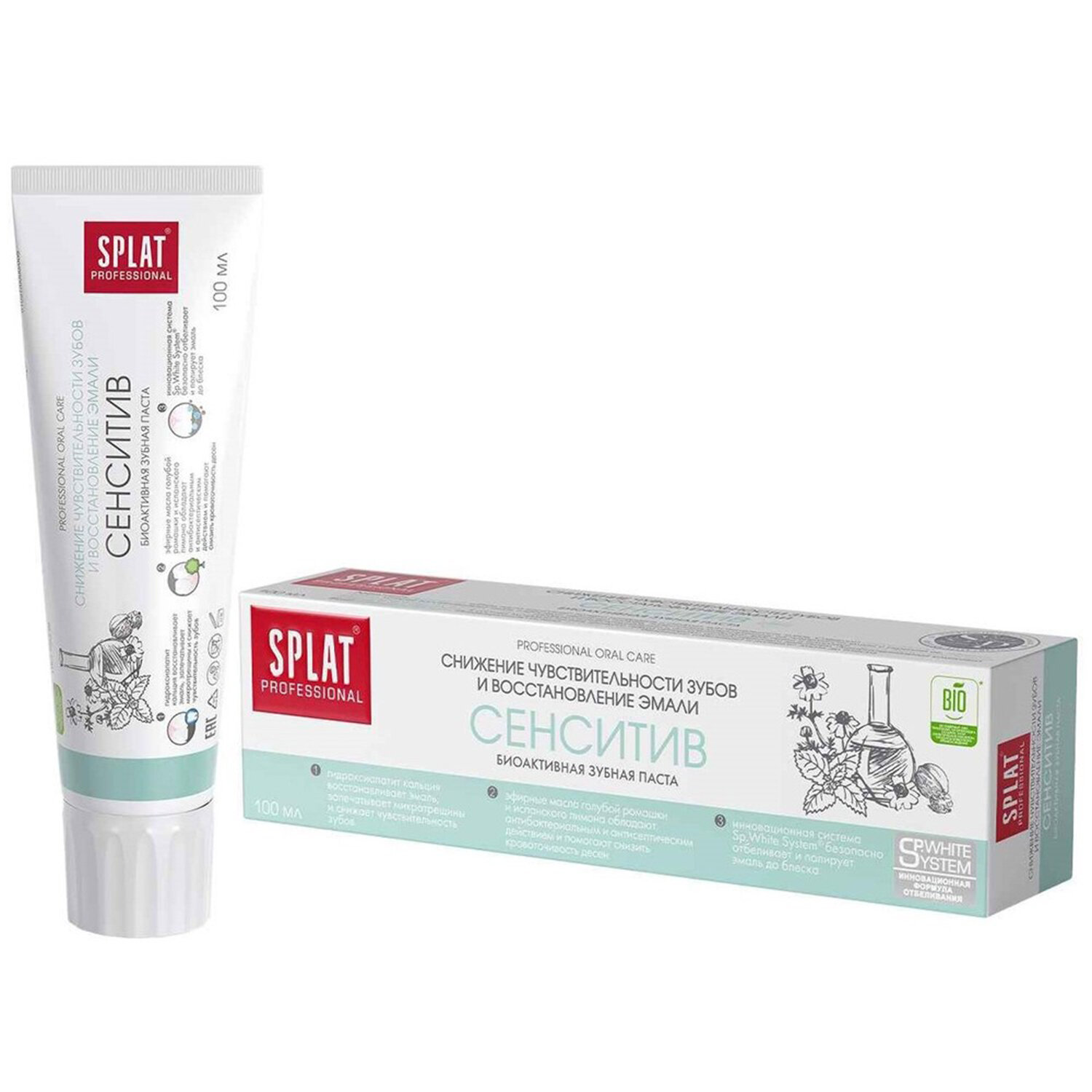 Продукция сертифицирована по стандарту t;Халяльt;. Зубная паста 100мл SPLAT PROFESSIONAL "Сенситив", для чувствительных зубов, 112.14010.0101