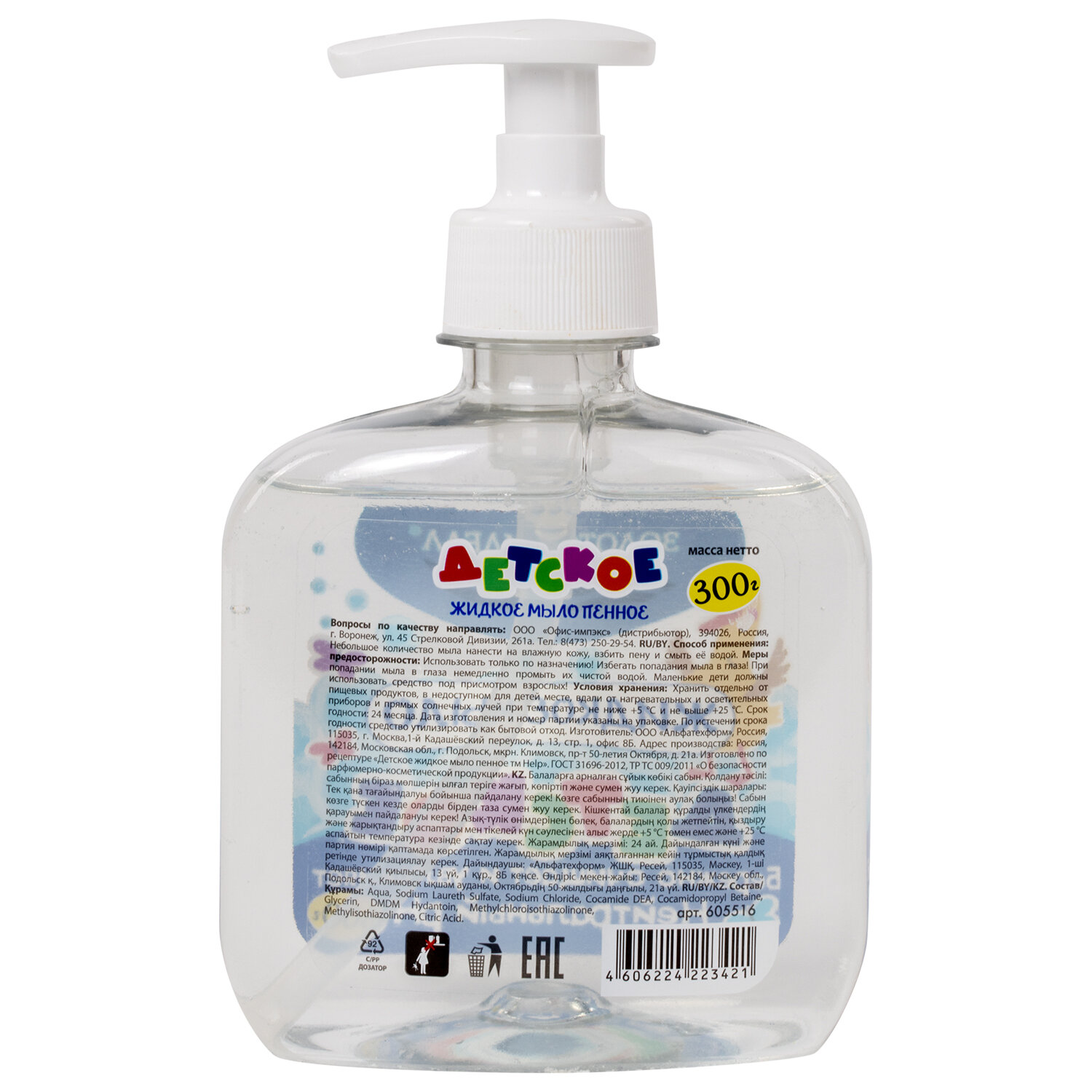 Меры предосторожности: использовать только по назначению! Хранить в недоступном для детей месте. При попадании мыла в глаза немедленно промыть их чистой водой.