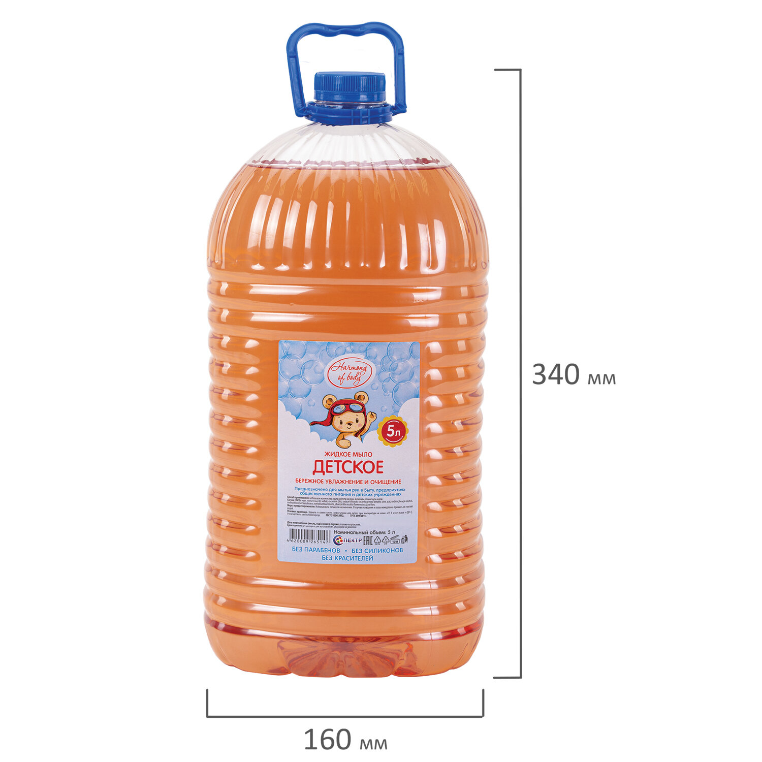 Срок годности: 24 месяца со дня изготовления, указанной на упаковке. Мыло жидкое ДЕТСКОЕ для детских учреждений и общепита 5 л, HARMONY OF BODY, ПЭТ, HoB-7