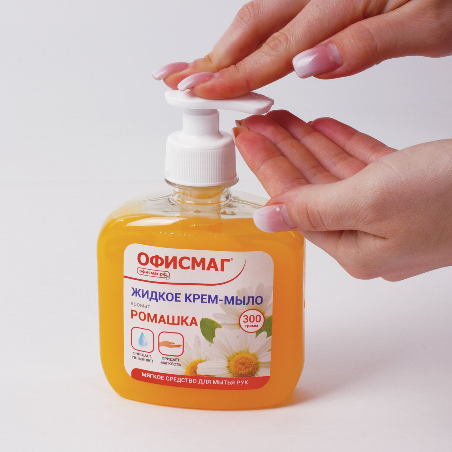 - Мыло-крем жидкое 300 г ОФИСМАГ, "Ромашка", дозатор, 606783