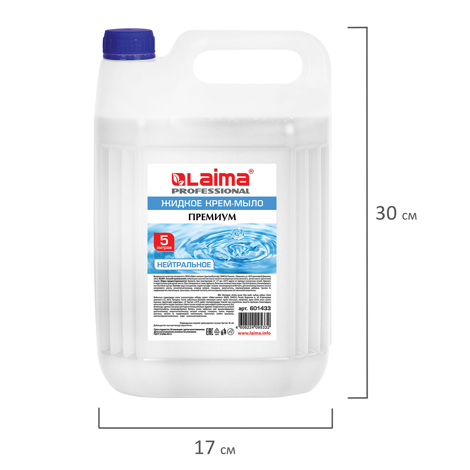 Массовая доля хлоридов не более 6%. Мыло-крем жидкое 5 л, ЛАЙМА PROFESSIONAL "Нейтральное", 601433