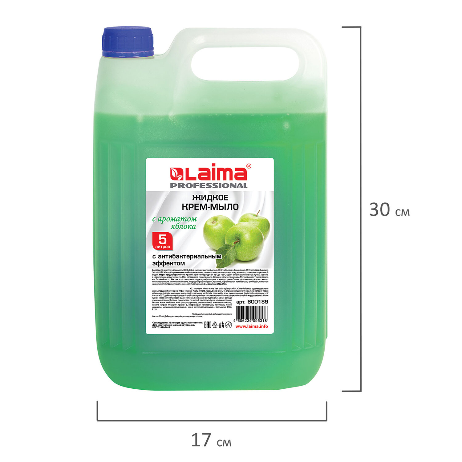 - Мыло-крем жидкое 5 л, ЛАЙМА PROFESSIONAL "Яблоко", с антибактериальным эффектом, 600189