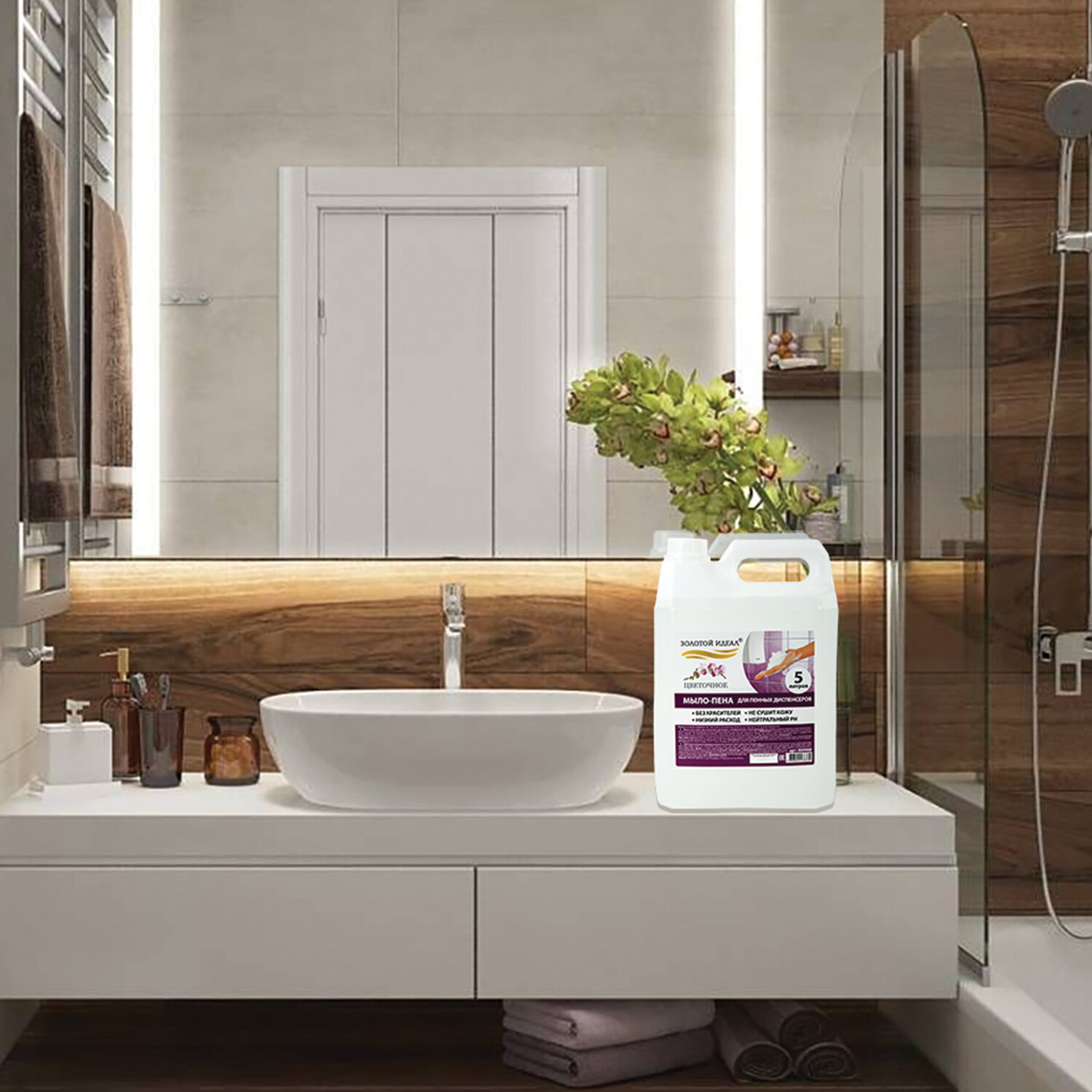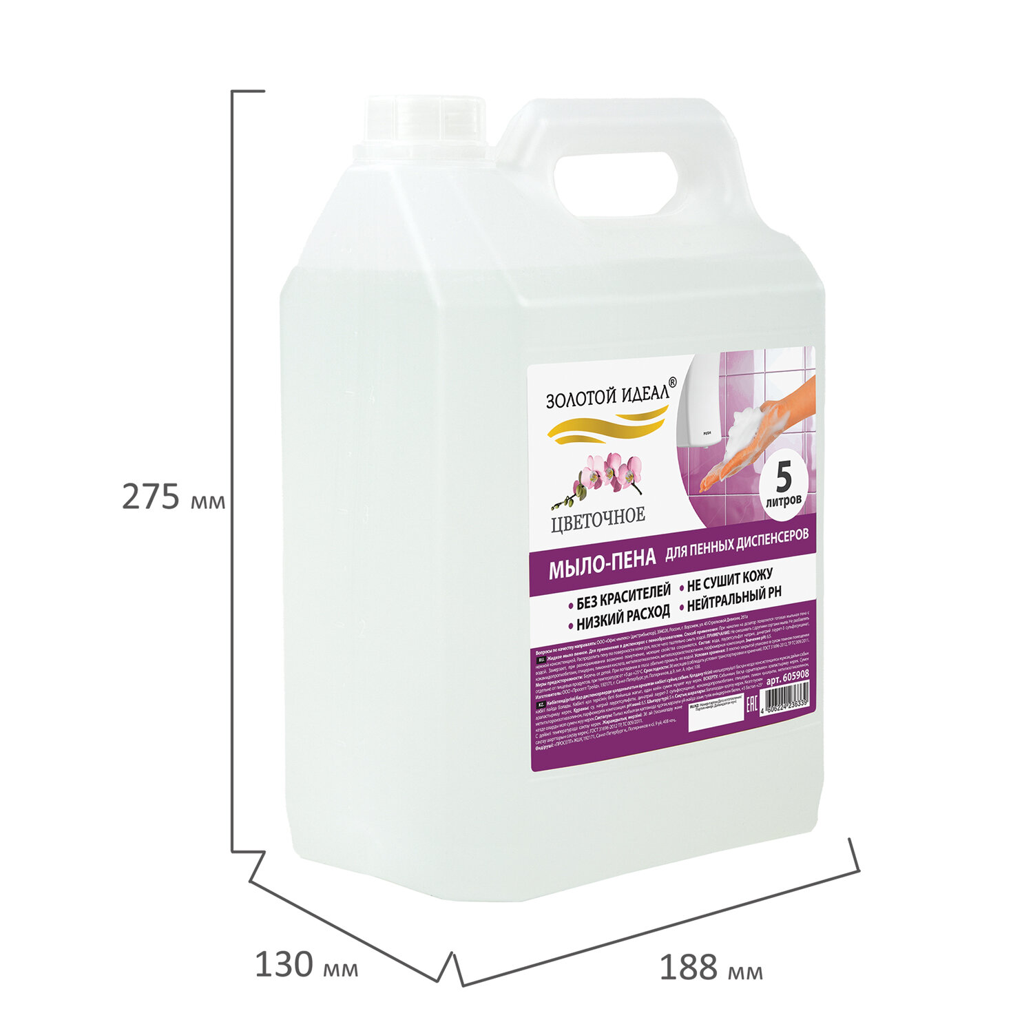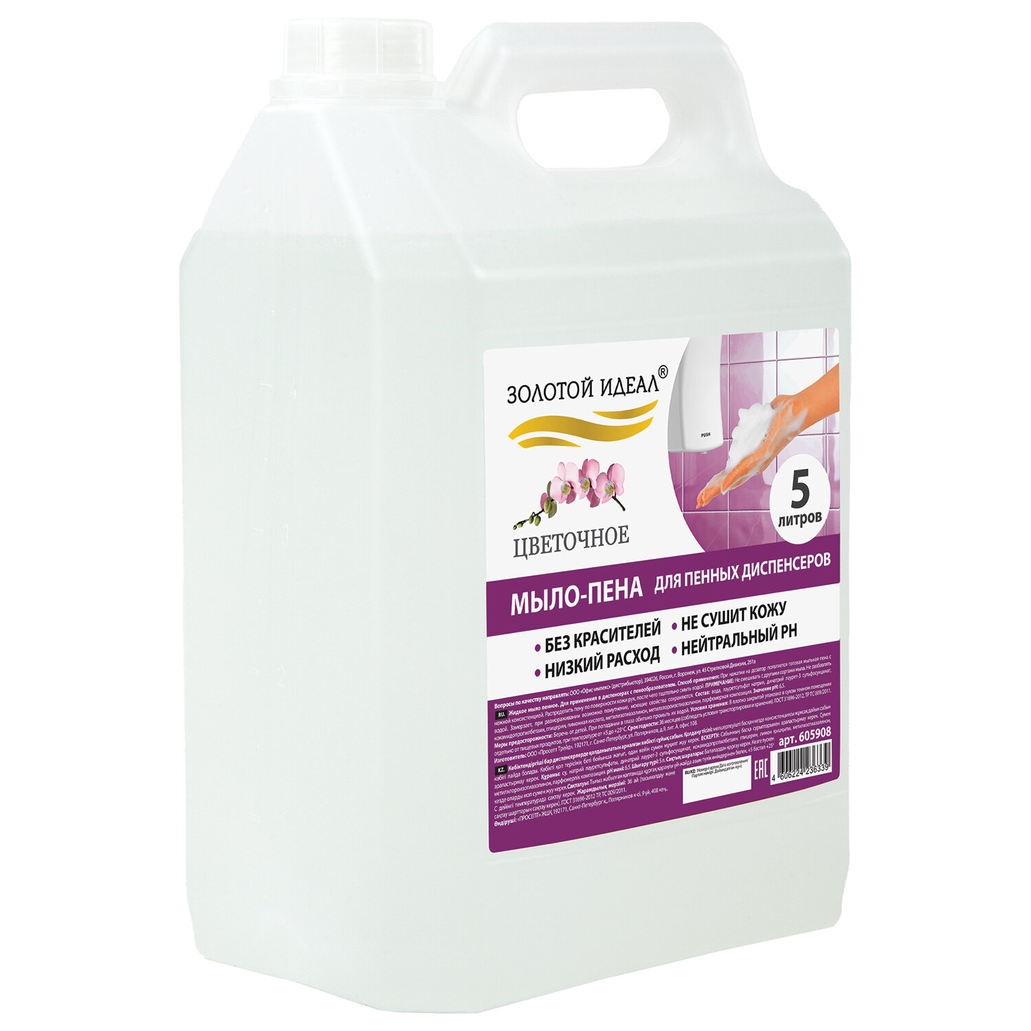 - Мыло-пена для специальных диспенсеров 5 л ЗОЛОТОЙ ИДЕАЛ "Цветочное", 605908