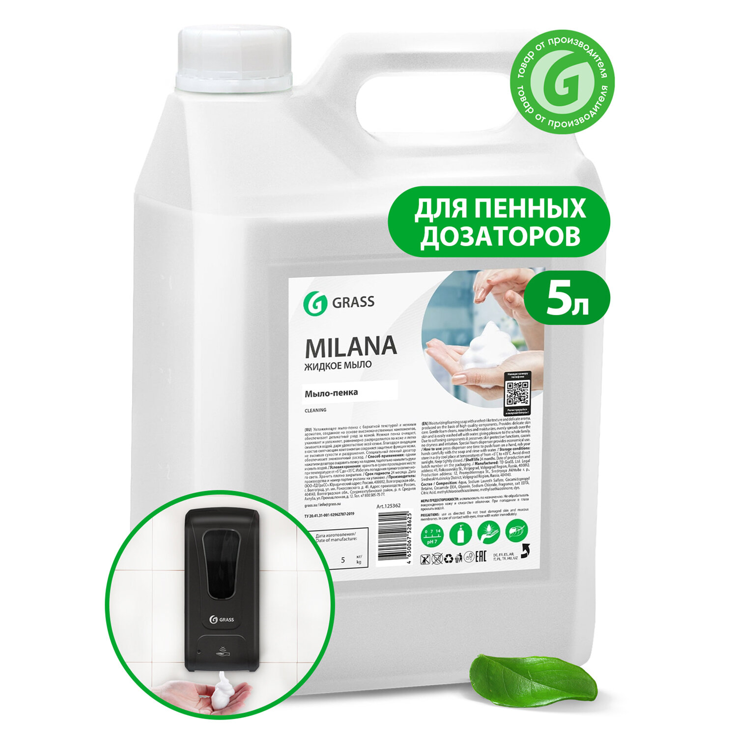 - Мыло-пена жидкое 5 кг, GRASS MILANA "Мыло-пенка", 125362