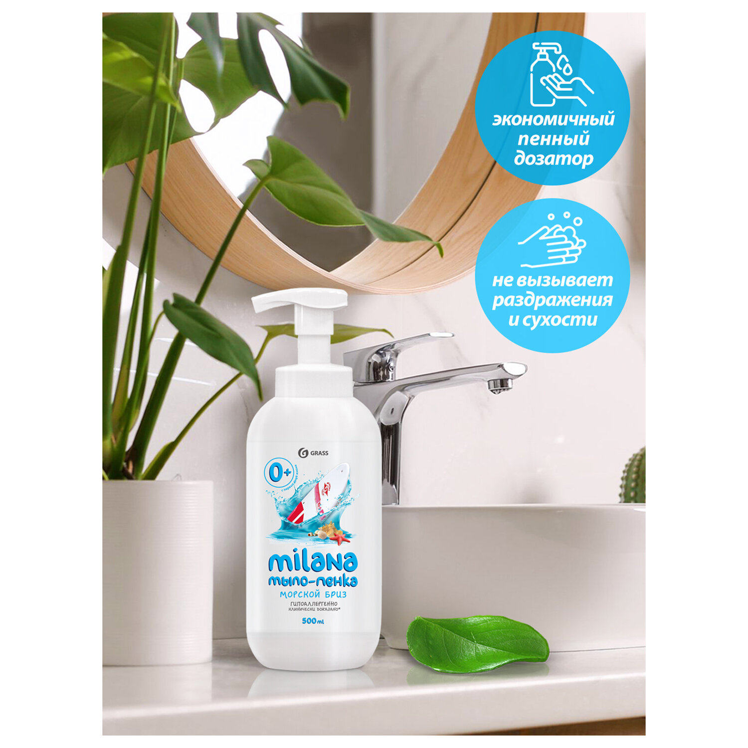- Мыло-пенка жидкое 500 мл GRASS MILANA "Морской бриз", дозатор, 125333