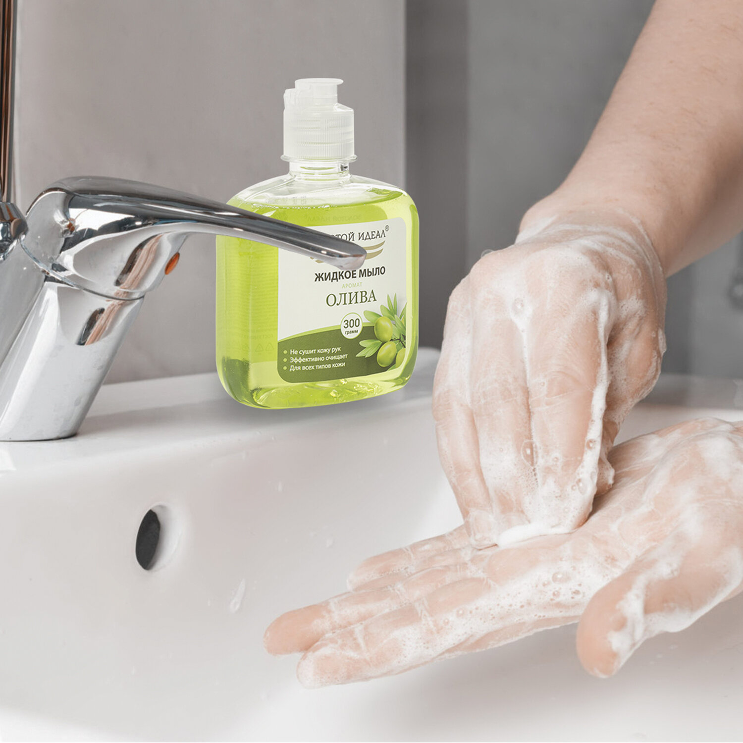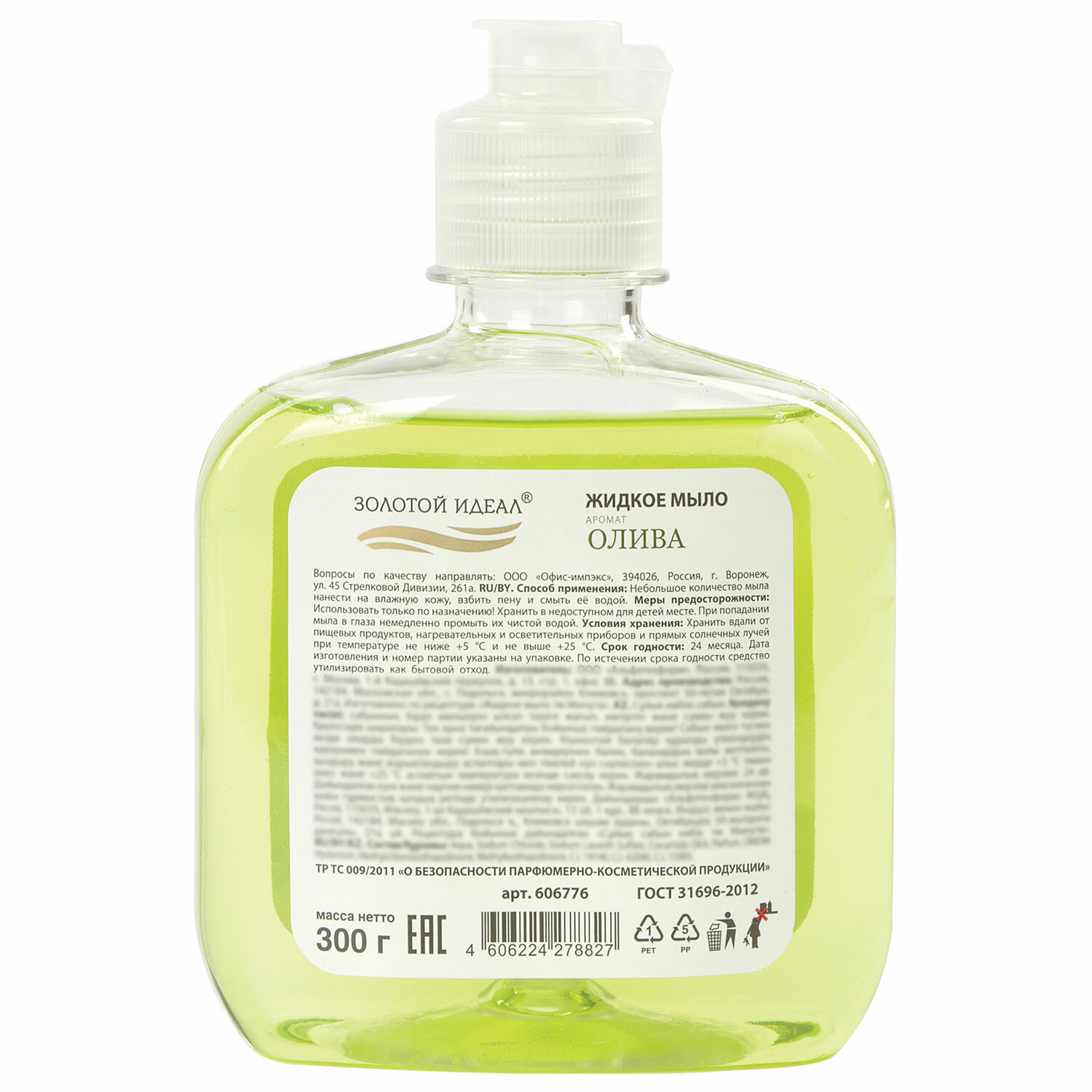 - Мыло жидкое 300 г ЗОЛОТОЙ ИДЕАЛ "Олива", флип топ, 606776