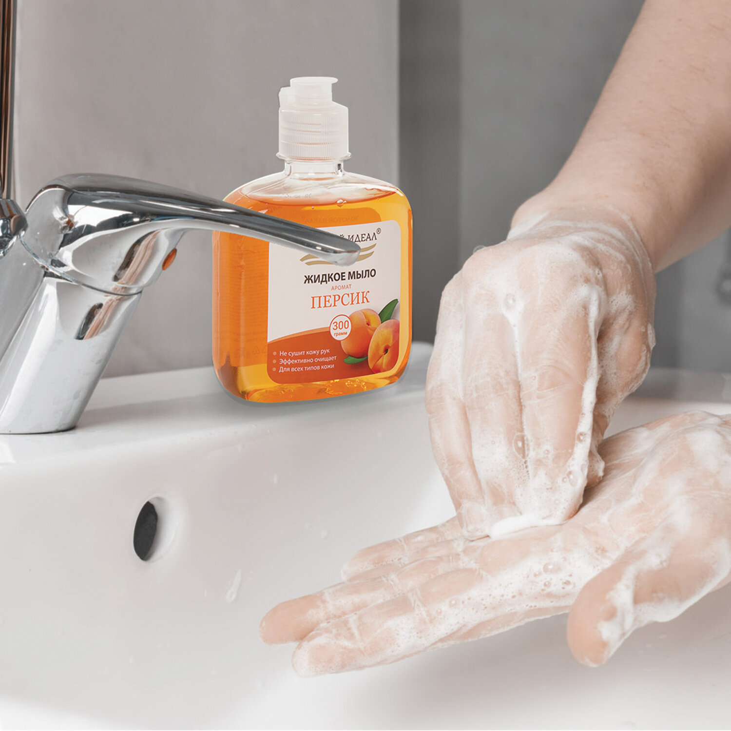 - Мыло жидкое 300 г ЗОЛОТОЙ ИДЕАЛ "Персик", флип топ, 606777