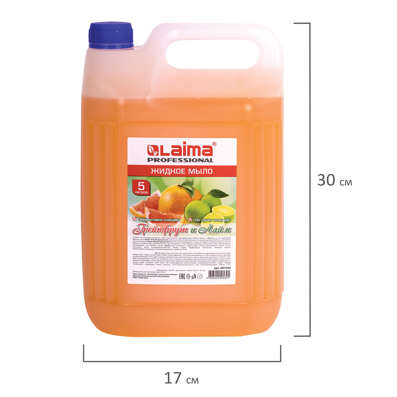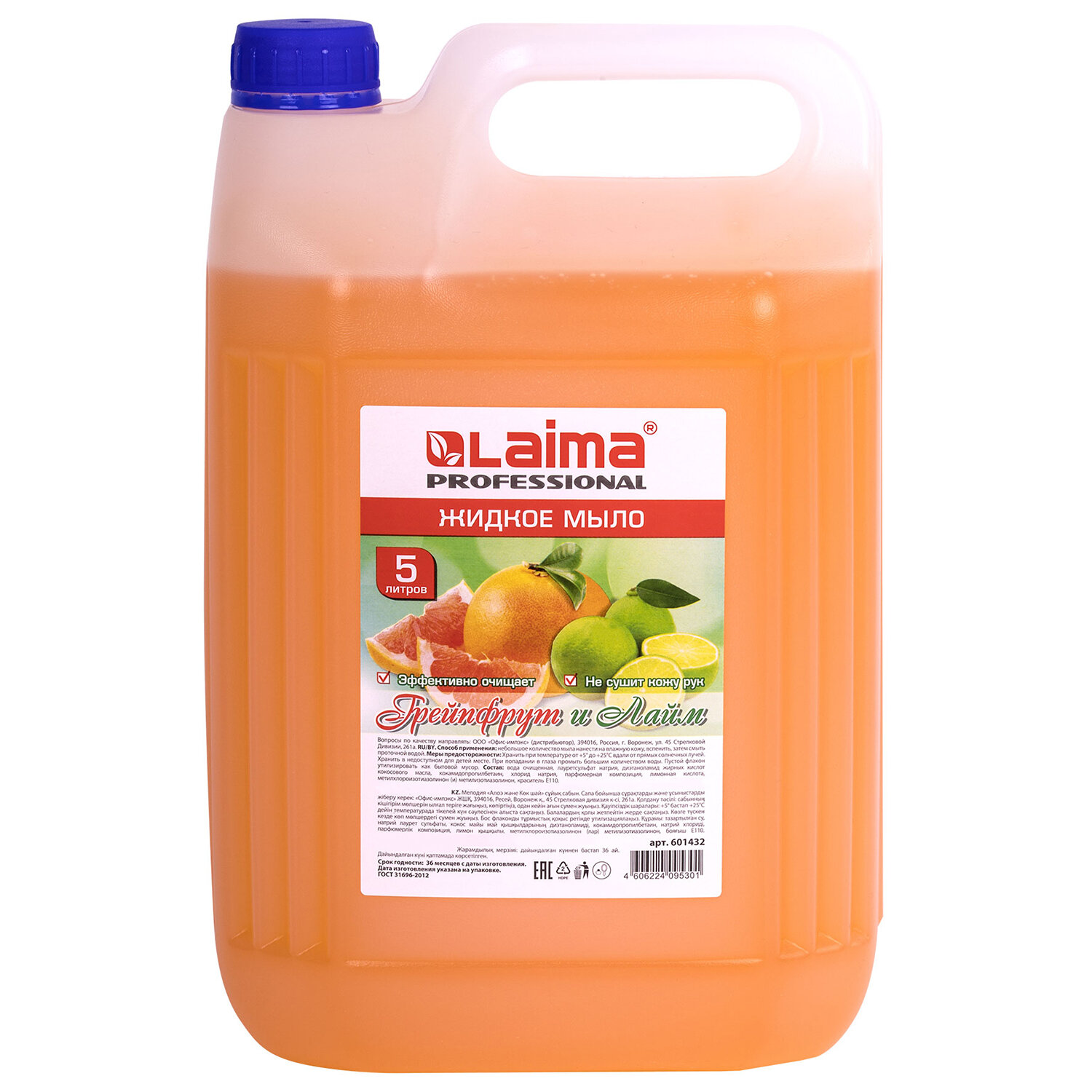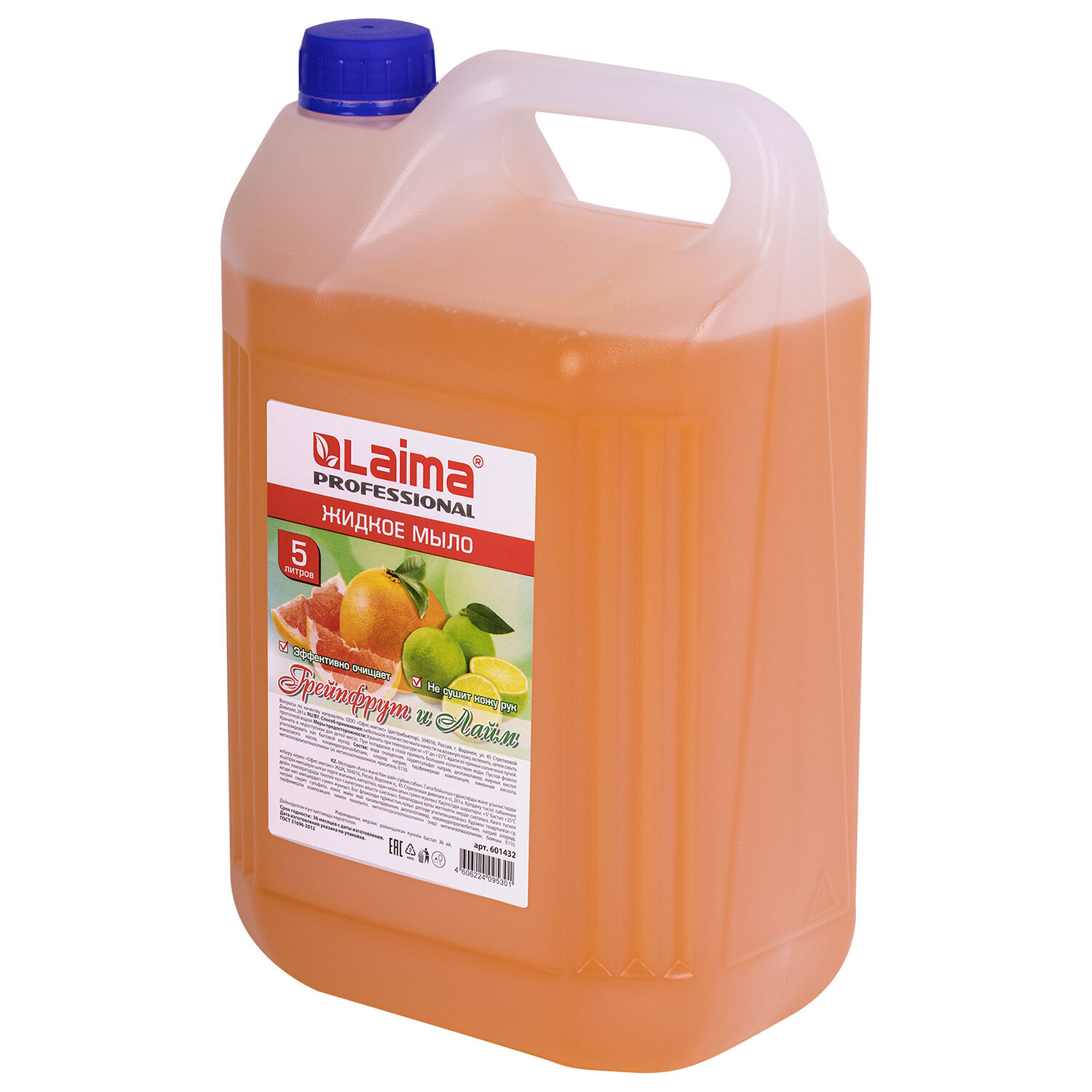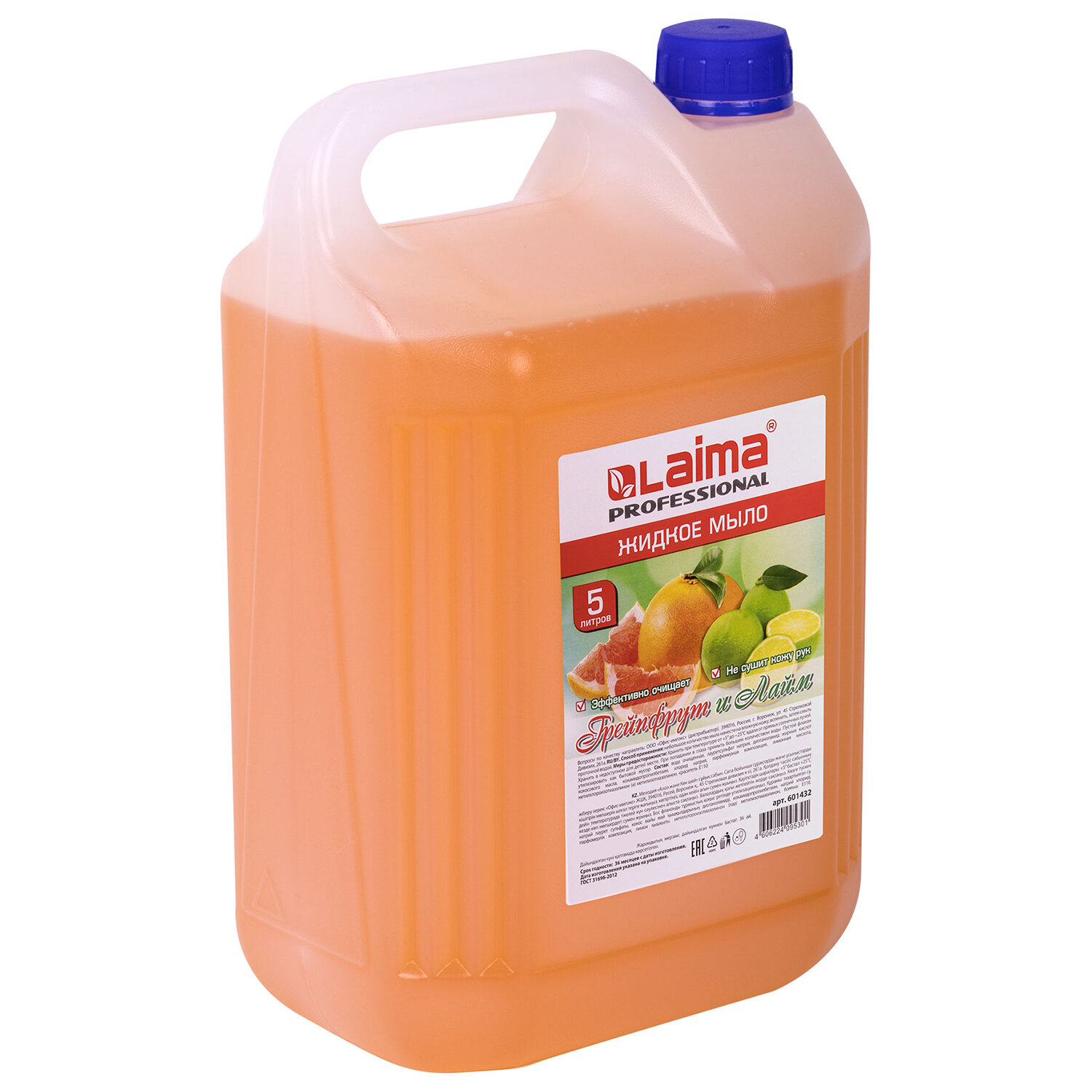 Массовая доля хлоридов не более 6% Мыло жидкое 5 л, ЛАЙМА PROFESSIONAL, "Грейпфрут и Лайм", 601432