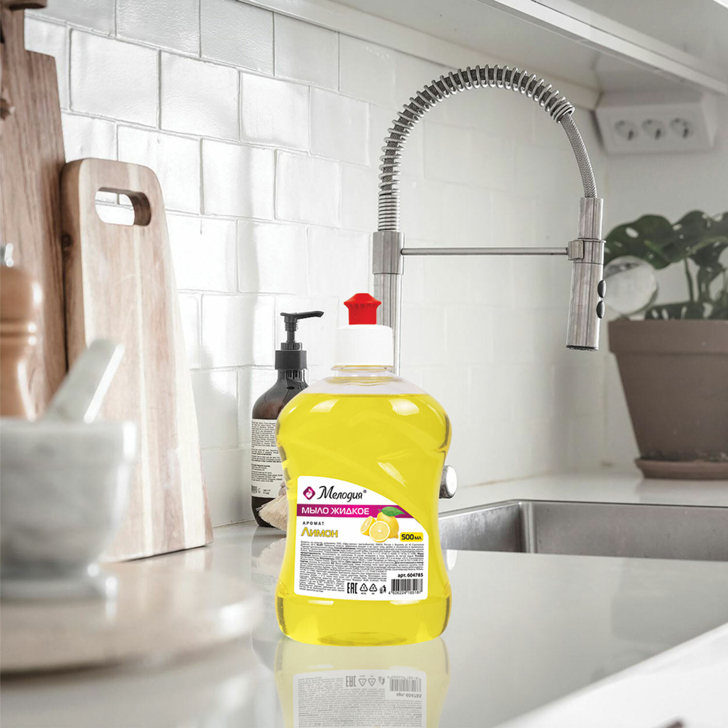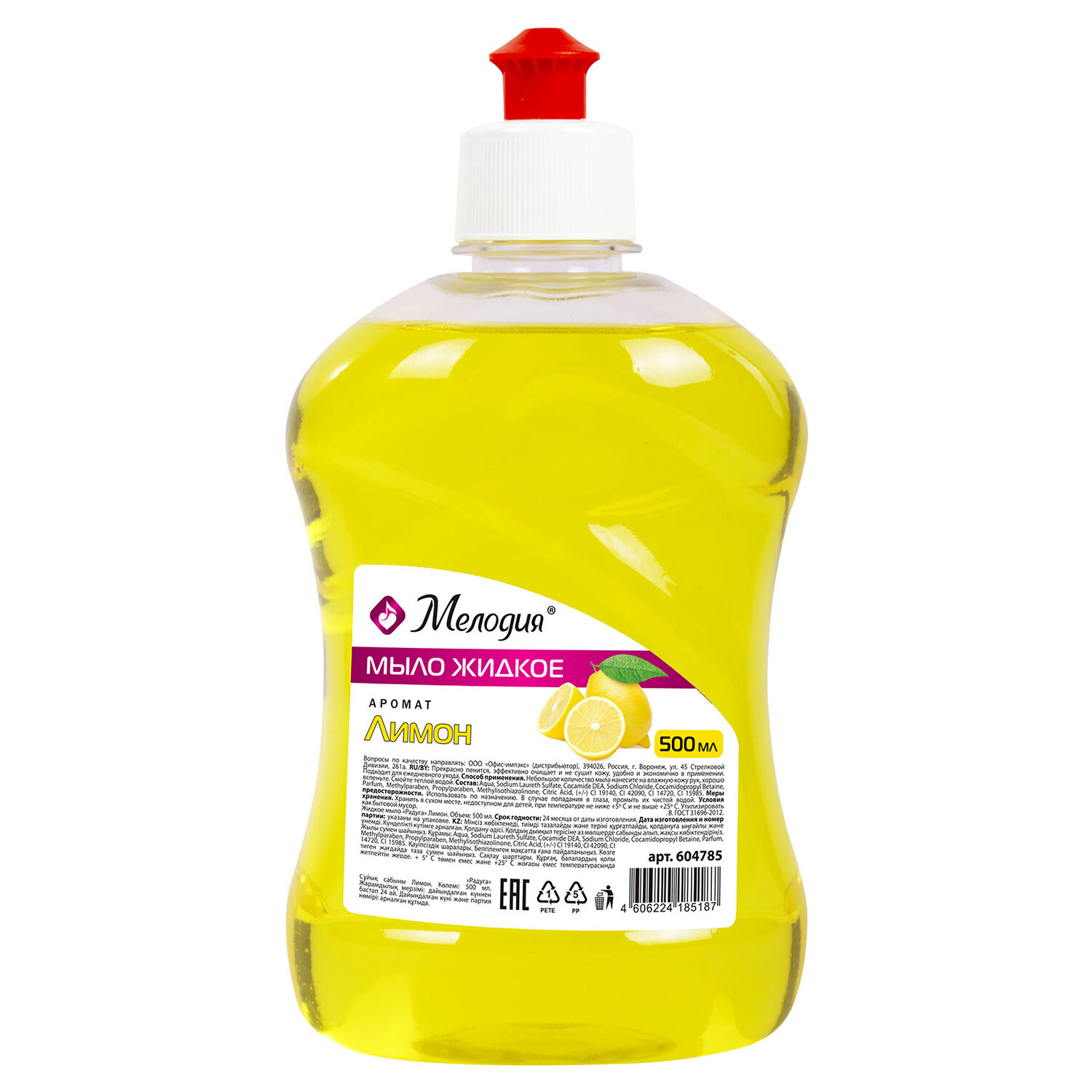 Это товар эконом-сегмента, поэтому он отличается привлекательной ценой. Товар обладает базовым набором характеристик и простой упаковкой, при этом полностью соответствует основным требованиям потребителей. Мыло жидкое 500 мл, МЕЛОДИЯ "Лимон", пуш-пул, 604785
