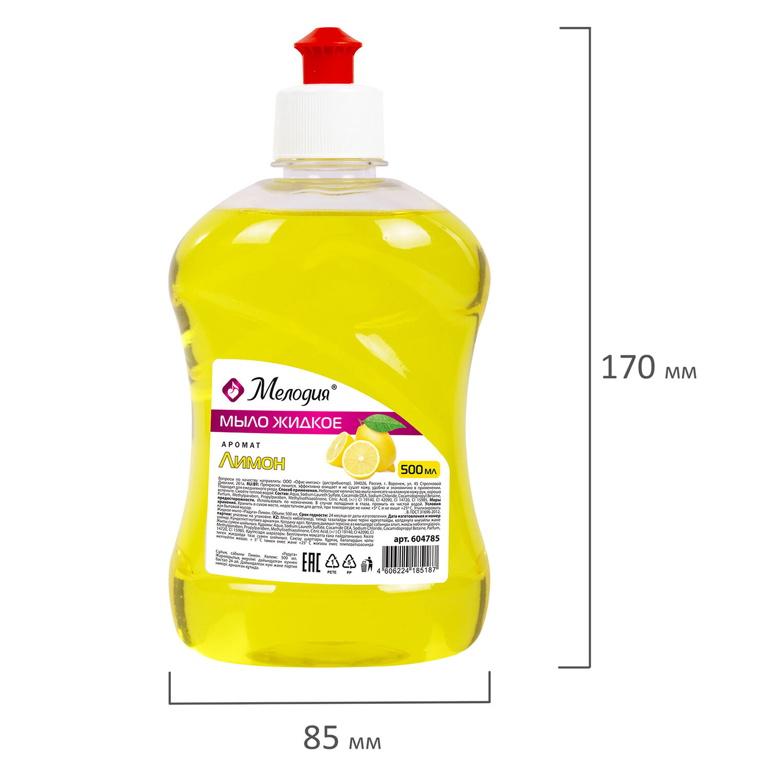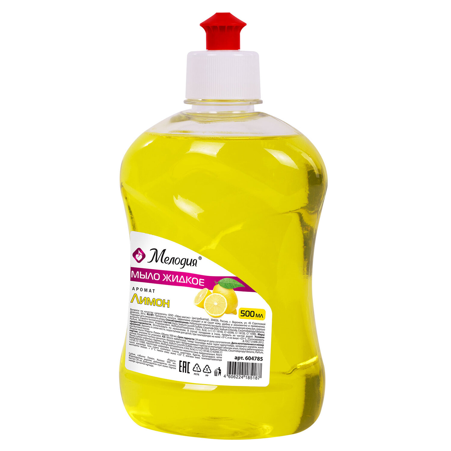 - Мыло жидкое 500 мл, МЕЛОДИЯ "Лимон", пуш-пул, 604785