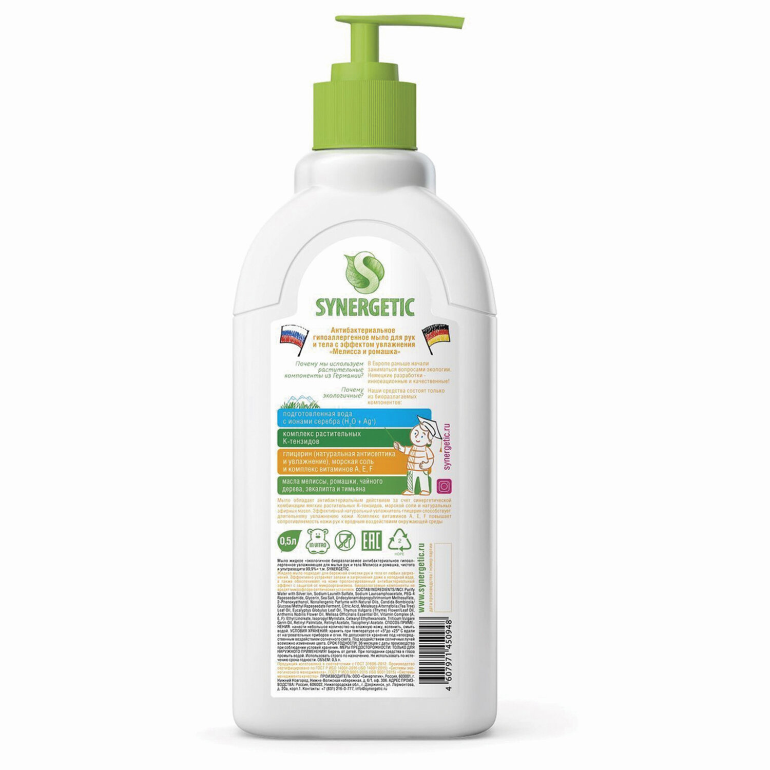 - Мыло жидкое антибактериальное 500 мл SYNERGETIC "Мелисса и ромашка", 105061