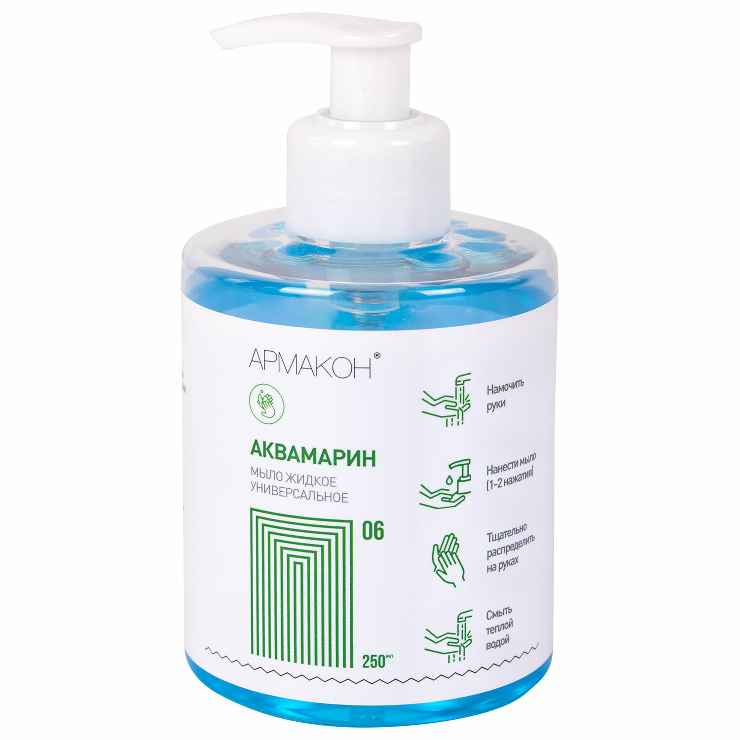 - Средство очищающее мыло жидкое 250 мл, АРМАКОН АКВАМАРИН, флакон, дозатор, 1335