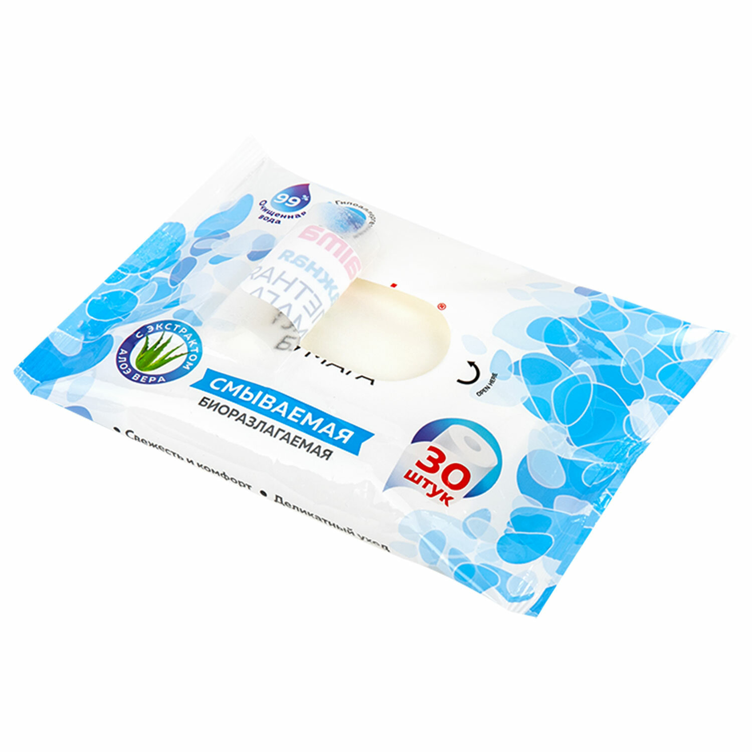 - Бумага туалетная влажная 30 шт., БИОРАЗЛАГАЕМАЯ, смываемая, с экстрактом алоэ вера, LAIMA, 128082